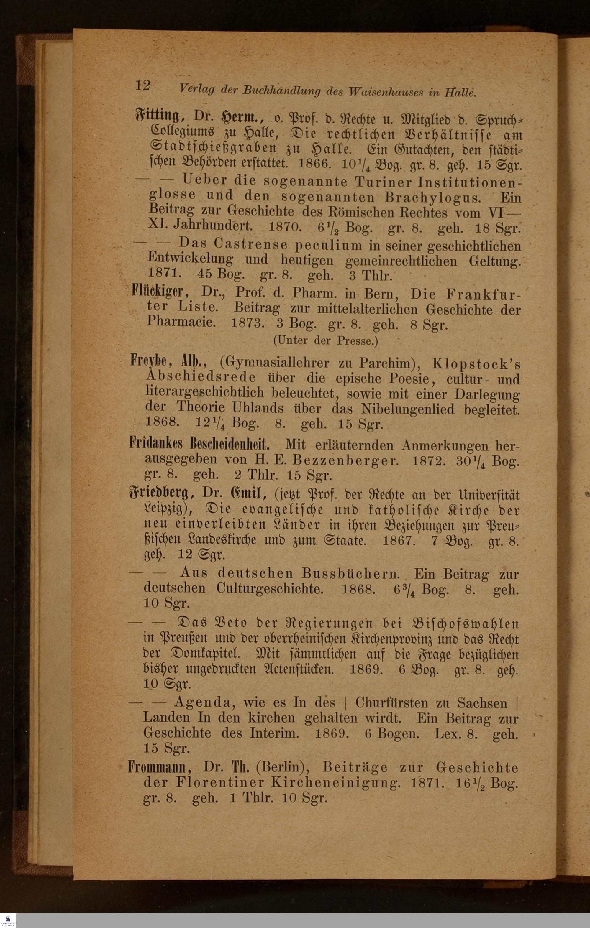 Verlags-Katalog der Buchhandlung des Waisenhauses in Halle a.S / Nachtrag
