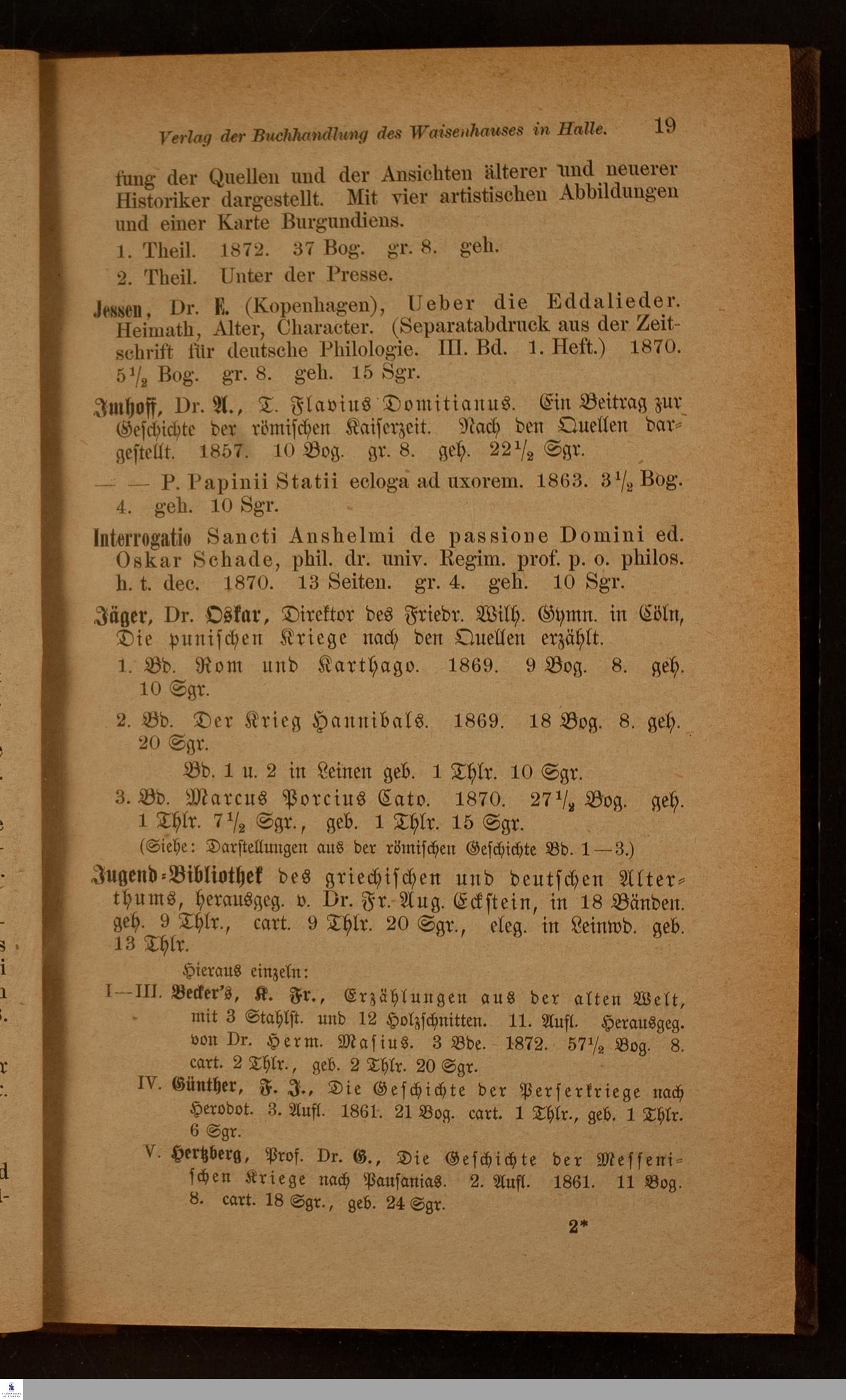 VERLAGS-CATALOG DER BUCHHANDLUNG DES WAISENHAUSES IN HALLE A/S.