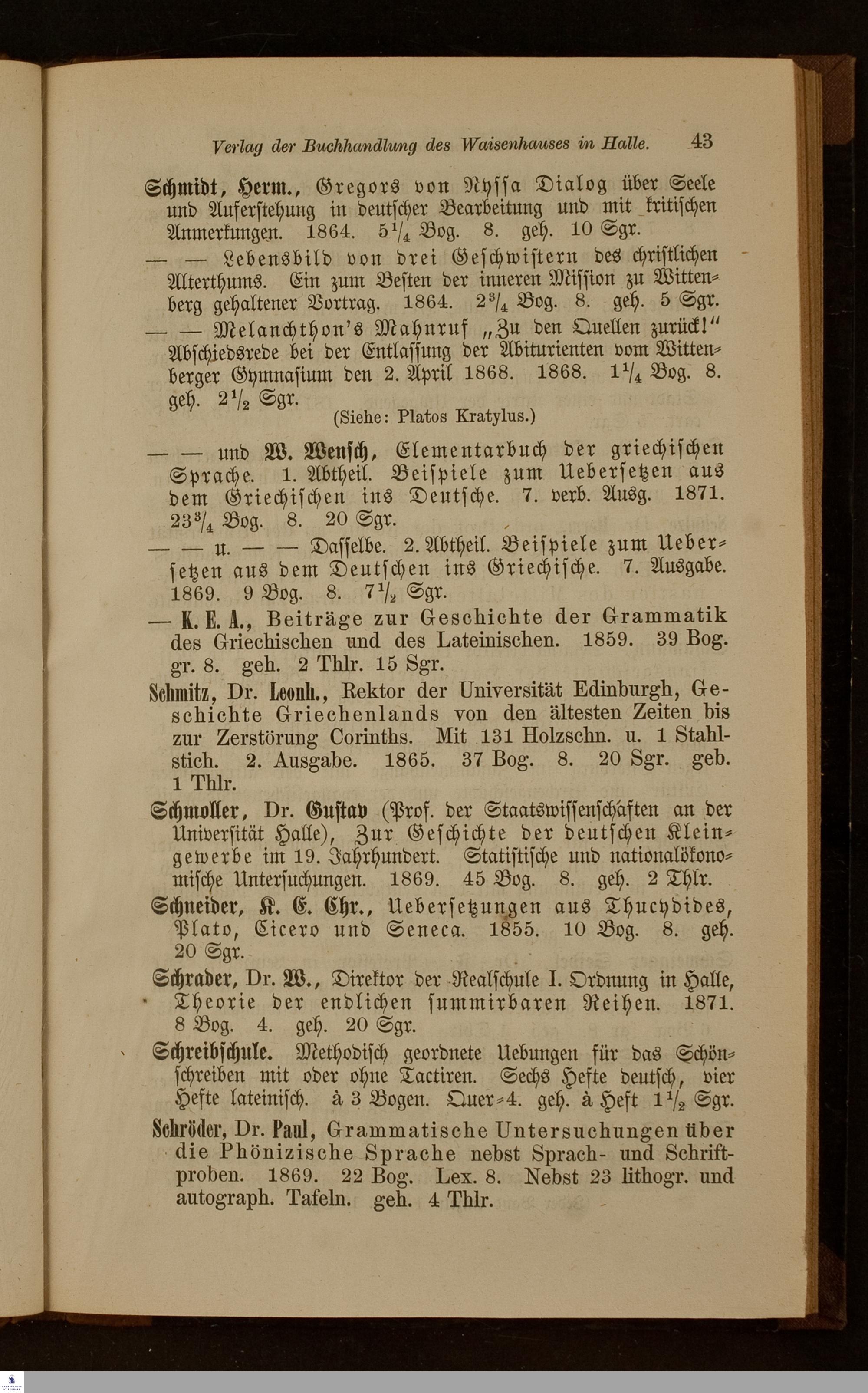 VERLAGS-CATALOG DER BUCHHANDLUNG DES WAISENHAUSES IN HALLE A/S.