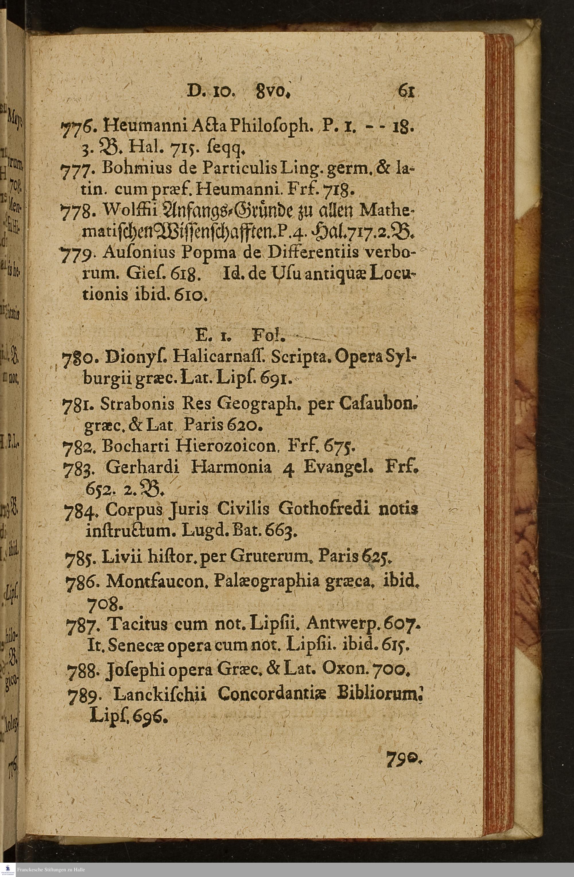 Catalogvs Bibliothecæ Clarissimi Viri Godofredi Kravlii, Collegae Tertii De Gymnasio Hallensi Optime Meriti : Qvæ Continet Selectissimos Libros Theologicos, Historicos, Philosoph. Philolog. Poet. Cet. D. VII. Maii Et Svbseqventibvs MDCCXXXVI. Hallæ In Ædibvs Rvdloffianis (in der Fleischer-Gasse) Hor. Antem. X-XII. Et Pom. II.-IV. Legibvs Avctionibvs Consvetis Plvs Licitantibvs Et Nvmeratam Pecvniam Solventibvs Divendendos.