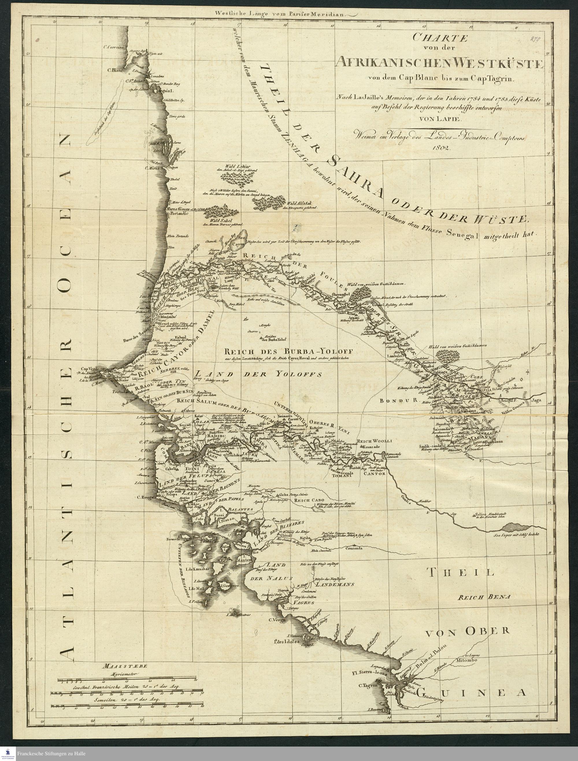 Charte von der Afrikanischen Westküste von dem Cap Blanc bis zum Cap Tagrin / Nach LaJaille's Memoiren, der in den Jahren 1784 und 1785 diese Küste auf Befehl der Regierung beschiffte entworfen Von Lapie