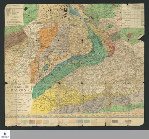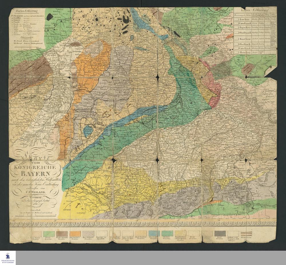Charte vom Königreiche Bayern : nach den vorzüglichsten Hülfsmitteln und der neuesten Kreis-Eintheilung / entworfen von C. F. Weiland ; A. Bürck sc. ; [Geologie von Christian Keferstein]