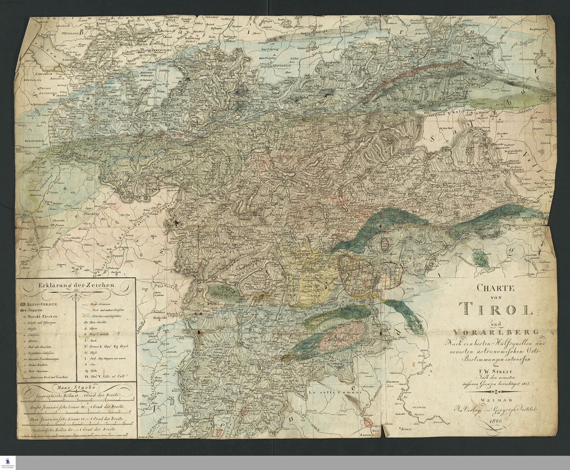 Charte Von Tirol und Vorarlberg : Nach den besten Hülfsquellen und neuesten astronomischen Orts-Bestimmungen entworfen / von F. W. Streit