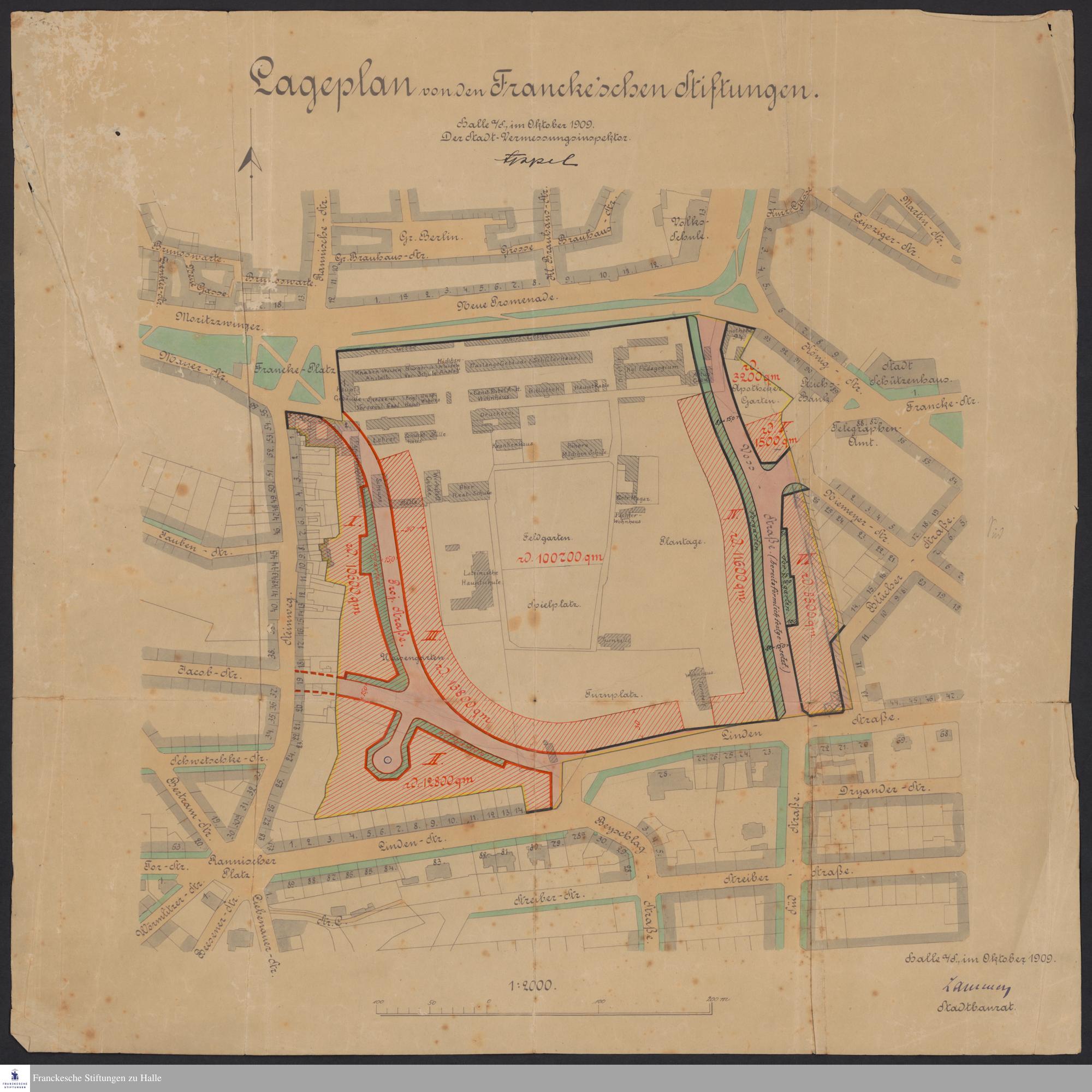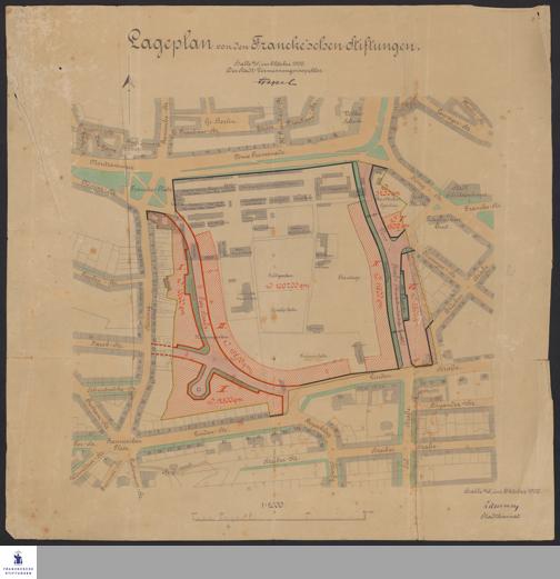 Gesamtsituationsplan der Franckeschen Stiftungen mit angrenzenden Stadtvierteln.