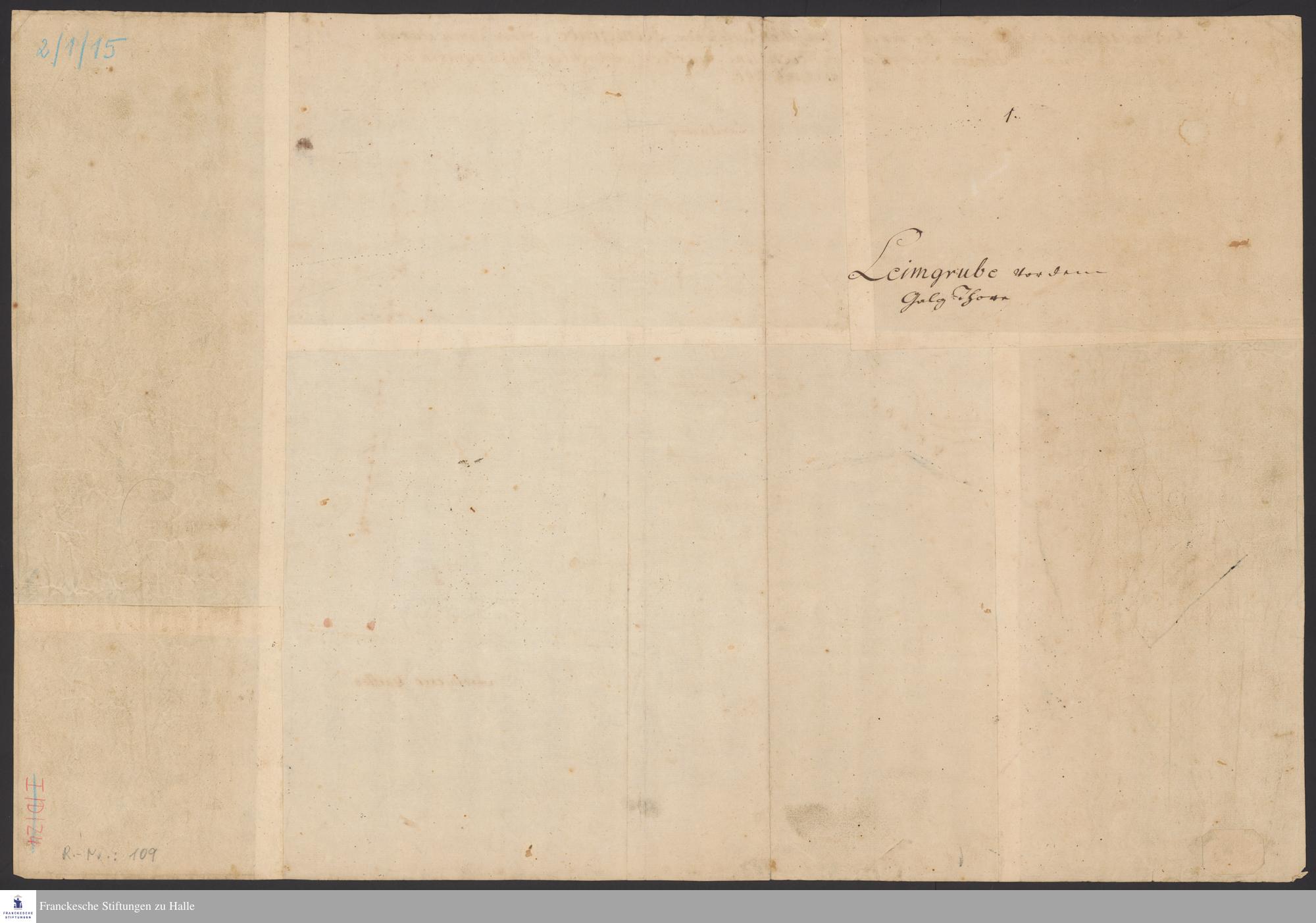 Teilplan von der Leimgrube mit Teich und Wassergraben sowie angrenzenden Grundstücken.