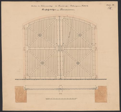 Neubau der Latrinenanlage der Francke'schen Stiftungen zu Halle a/S. Einfahrtsthor zum Tonnenraum.
