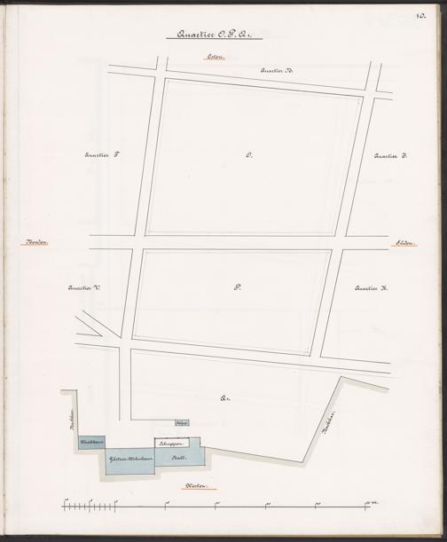 Quartier O, P und Q 1 des Teilsituationsplanes vom Waisengarten.