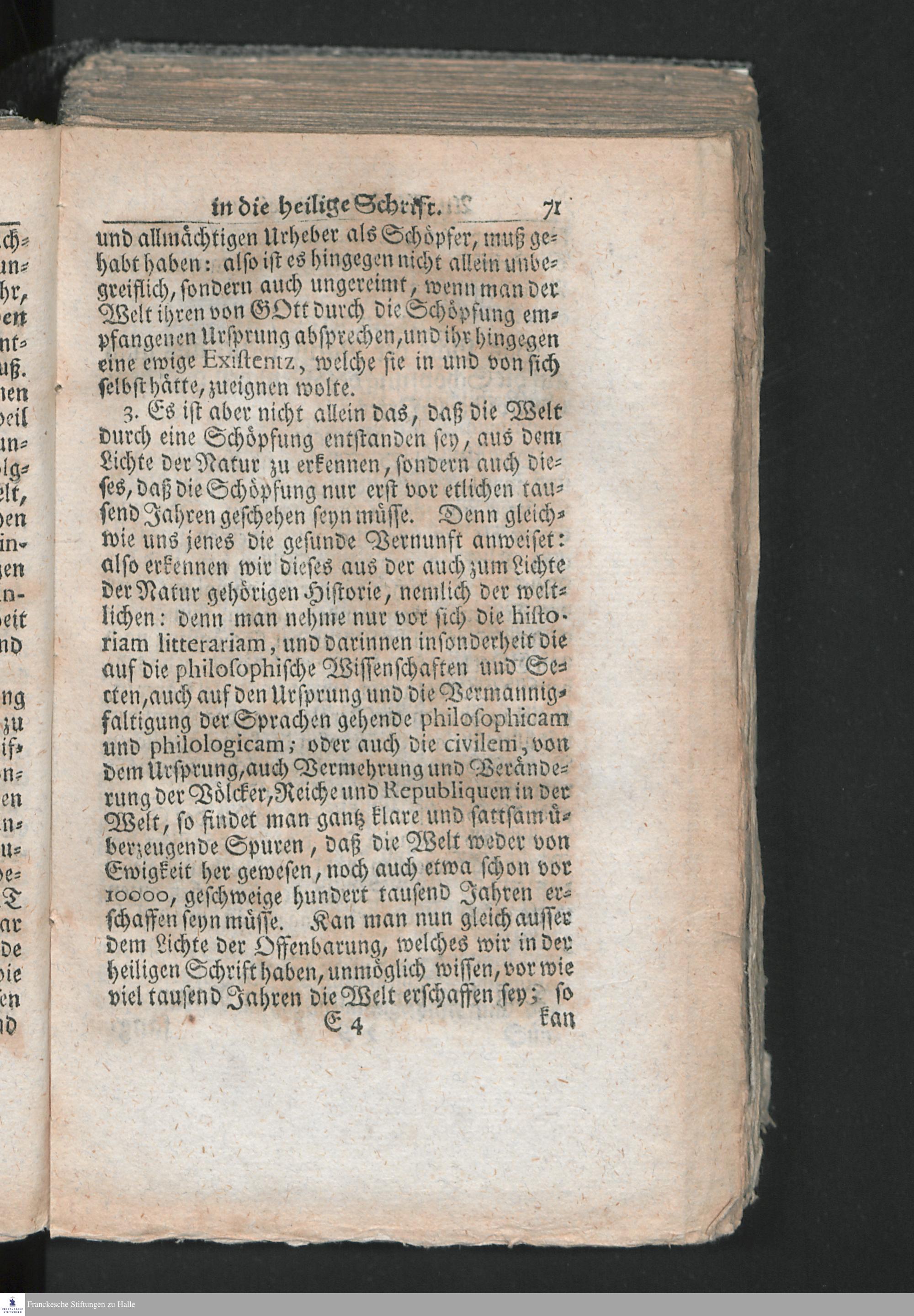 Ausführliche Einleitung in die Heil. Schrift : Darinn der Leser, Nach vorgetragener Lehre von der Unsterblichkeit der menschlichen Seele, erstlich wider die Atheisten, auf die natürliche Theologie und Religion ; Und hernach Von dieser wider die Naturalisten auf die geoffenbahrete Meßianische und Christliche ... Religion, mit Uberzeugung von der göttlichen Auctorität der heil. Schrift ... Zur Prüfung aller unrichtigen Lehr-Verfassungen geführet wird / Aus dem Mosaischen Licht und Recht auf Verlangen zum gemeinen Gebrauch besonders ausgefertiget Von D. Joachim Langen, S. Theol. Prof. Ord.