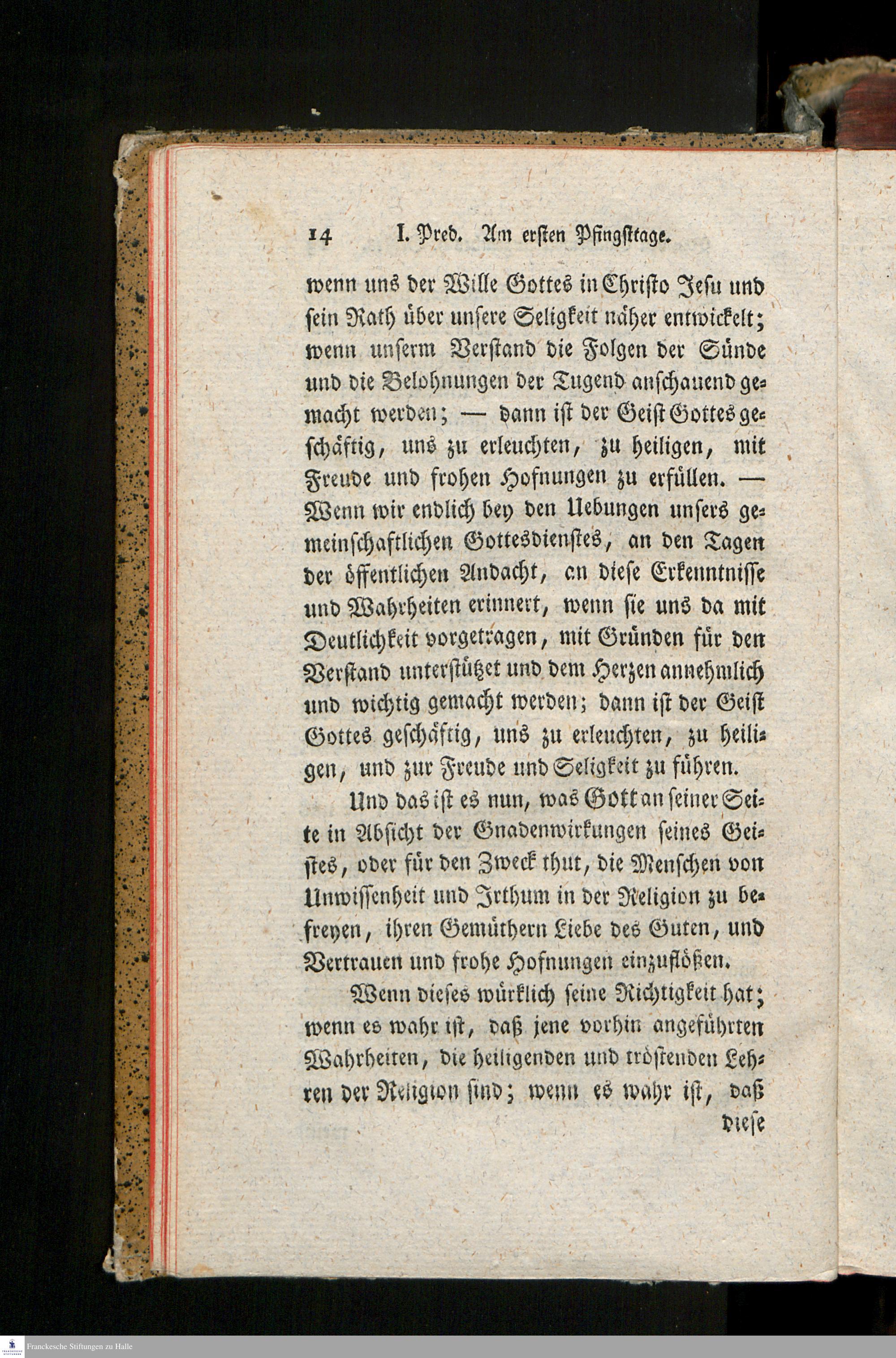 I. Predigt über das Evangelium Am ersten Pfingsttage. Joh. 14, 23 - 31. Von den Gnadenwirkungen...
