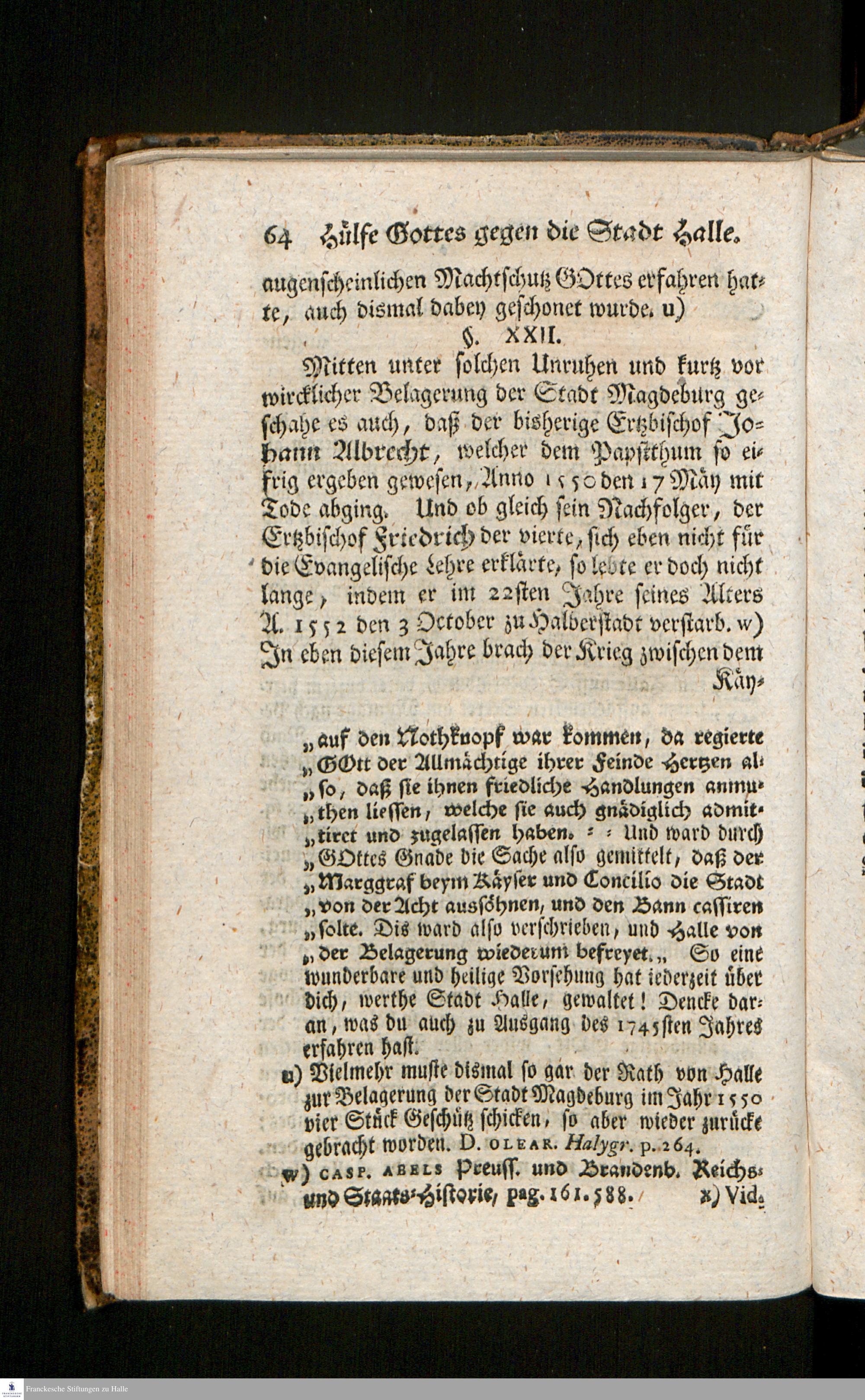 Kurtzgefaßte Nachricht von den wegen des Interims vor zweyhundert Jahren so wol in der Stadt Halle, als auch sonst noch vorgefallenen Merckwürdigsten Begebenheiten : zum erneuerten Andencken der damals gar sonderlich über waltenden Güte Gottes, aus verschiedenen dahin gehörigen Schriften der Kirchen- und politischen Geschichte mitgetheilet / von Johann George Kirchnern, Adjuncto Ministerii und Predigern bey der Kirche zur L. Frauen.