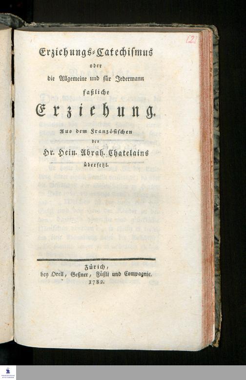 Erziehungs-Catechismus oder die Allgemeine und für Jedermann faßliche Erziehung / Aus dem Französischen des Hr. Hein. Abrah Chatelains übersetzt