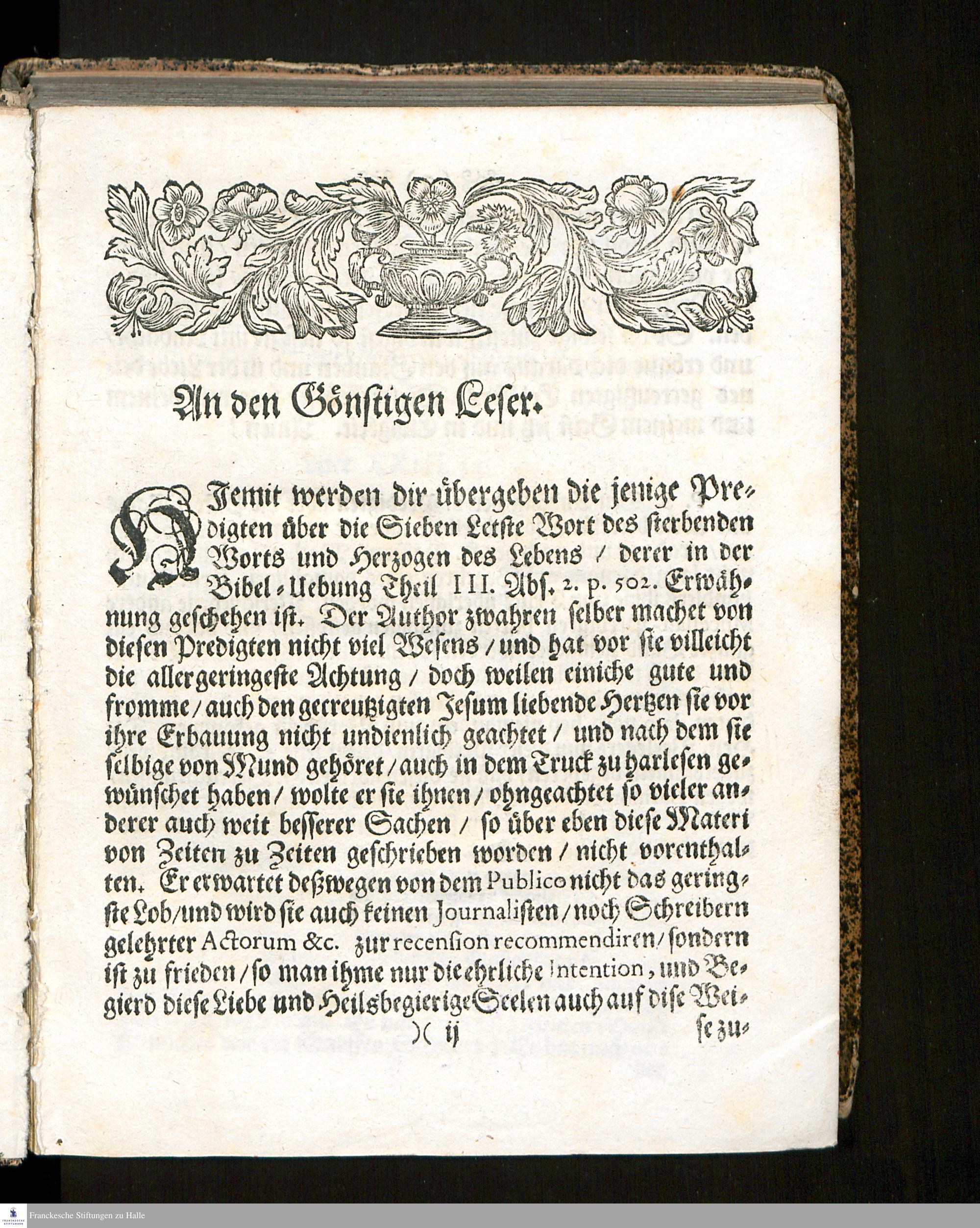 Die Lezte Reden Des Am Creutz Sterbenden Herzogen des Lebens/ in so vielen Predigten verfasset : Darzu kommet ein Anhang von etlichen anderen Predigten Ehe dessen schon gehalten / Von Joh. Jacob Ulrich/ Prediger im Wäisen-Haus zu Zürich/ und Prof. der Sittenlehr an dem Gymnasio Illustri daselbst.