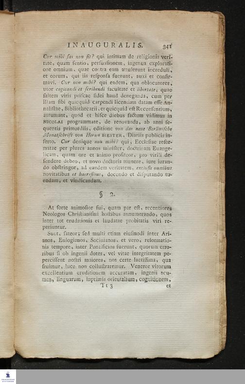 Dissertatio Inauguralis De Veterum Et Recentiorum Obtrectationibus, Veritatem Religionis Christianae Non Labefactantibus, Immo Confirmantibus / Quam, Consensu Venerandi Theologorum Ordinis In Inclyta Duisburgensium Academia, Pro Summis In Theologia Honoribus Exhibuit Ianus Scharpius, Haga-Batavus, Iure Ecclesiastico Roterodamensium Ecclesiae Pastor legitimus, illiusque consensu iam Pastor Ecclesiae Logensis in Orientali Frisia Borussorum ... A.D. 10 Ianuari anni MDCCXCIX.