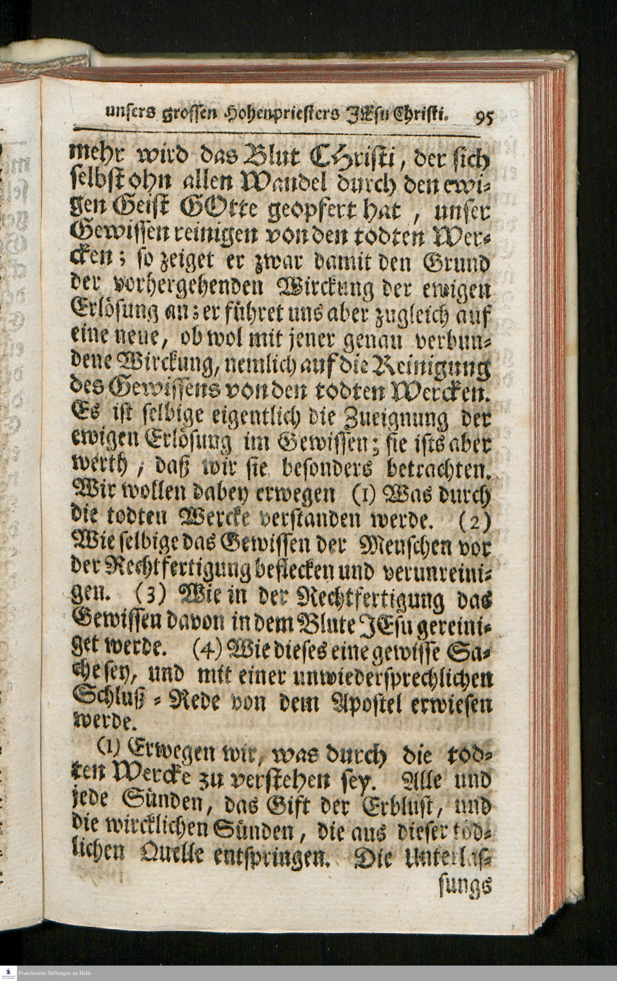 Die Lehre Von dem Opfer-Blute Unsers grossen Hohenpriesters Jesu Christi, Aus Ebr. 9, v. 11.-14. Jn Einigen Paßions-Predigten Jn der Schloss-Kirche zu Wernigerode erwogen : Hernach in Kurtze Betrachtungen verfasset Und auf vieler Zuhörer Verlangen im Druck gegeben / Von Johann August Seydlitz/ Hof-Diacono