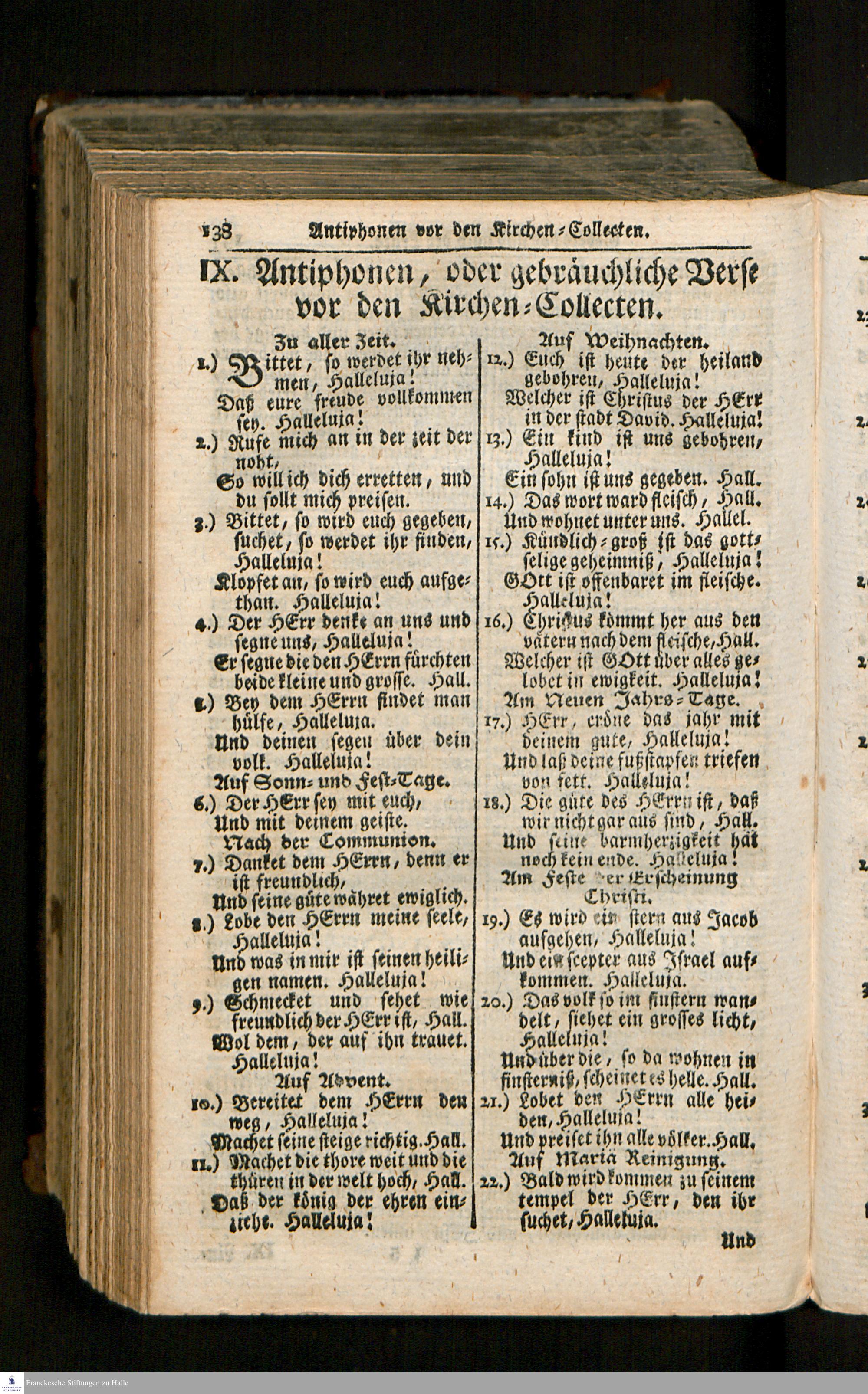 IX. Antiphonen, oder gebräuchliche Verse vor den Kirchen-Collecten.