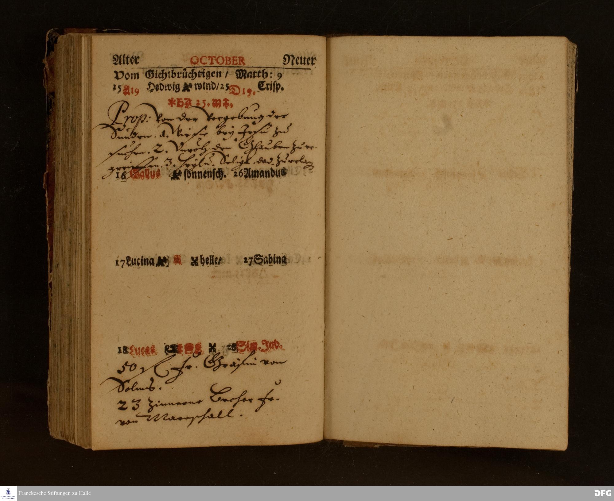 Schreibkalender von August Hermann Francke.