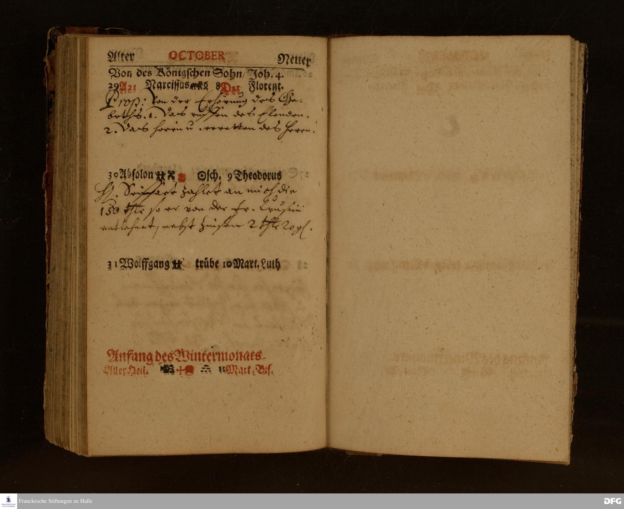 Schreibkalender von August Hermann Francke.