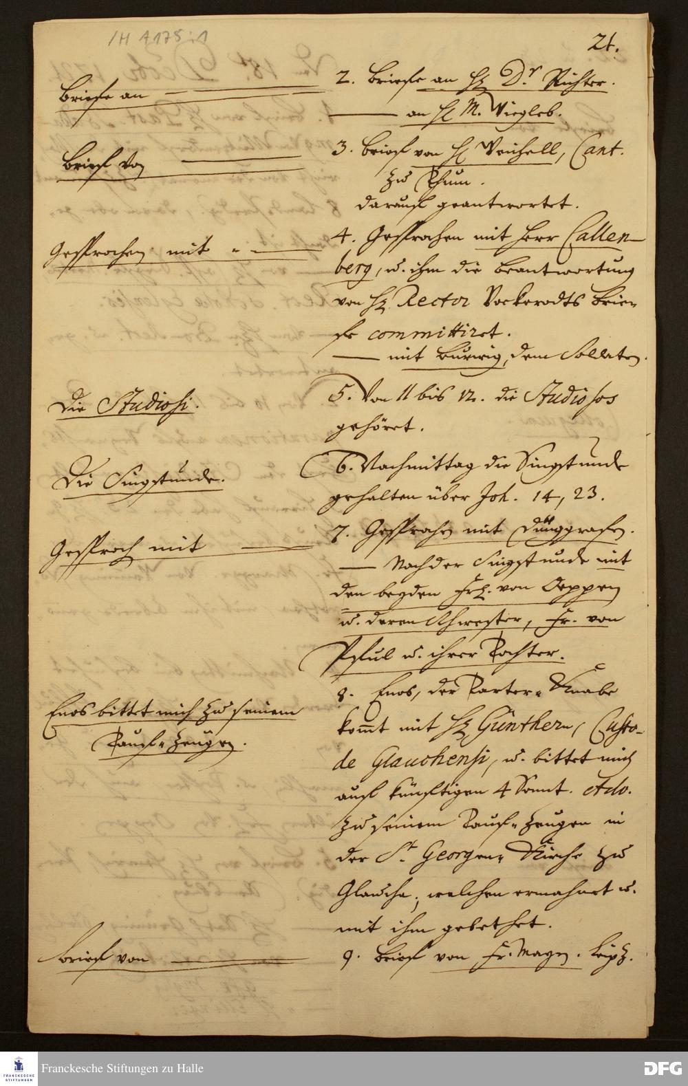 Tagebuch von August Hermann Francke.