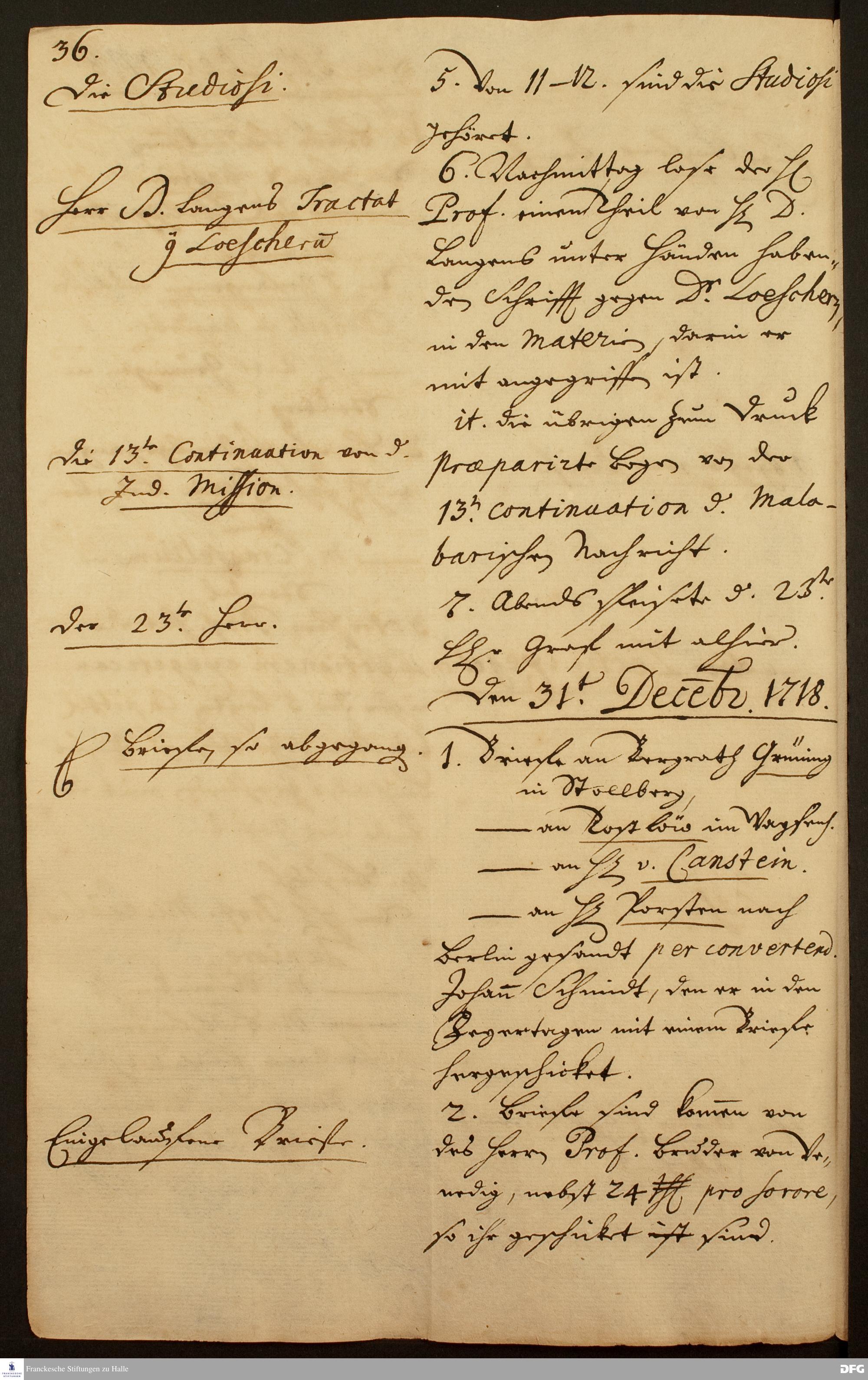 Tagebuch von August Hermann Francke.