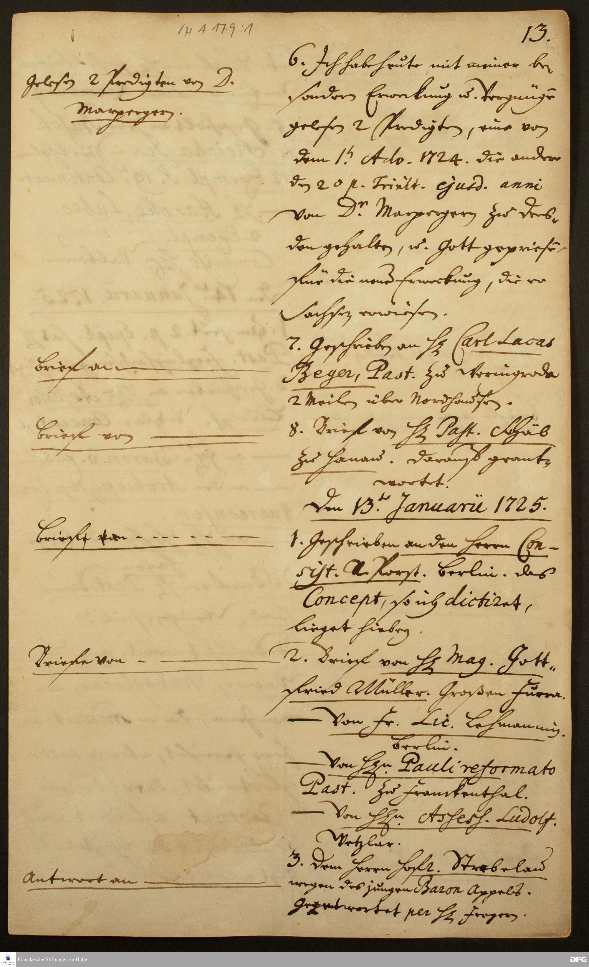 13. Januar 1725
