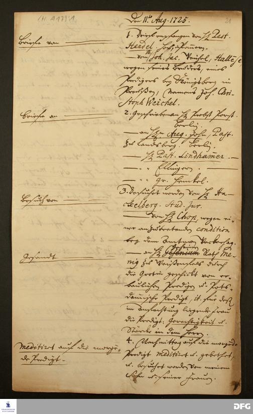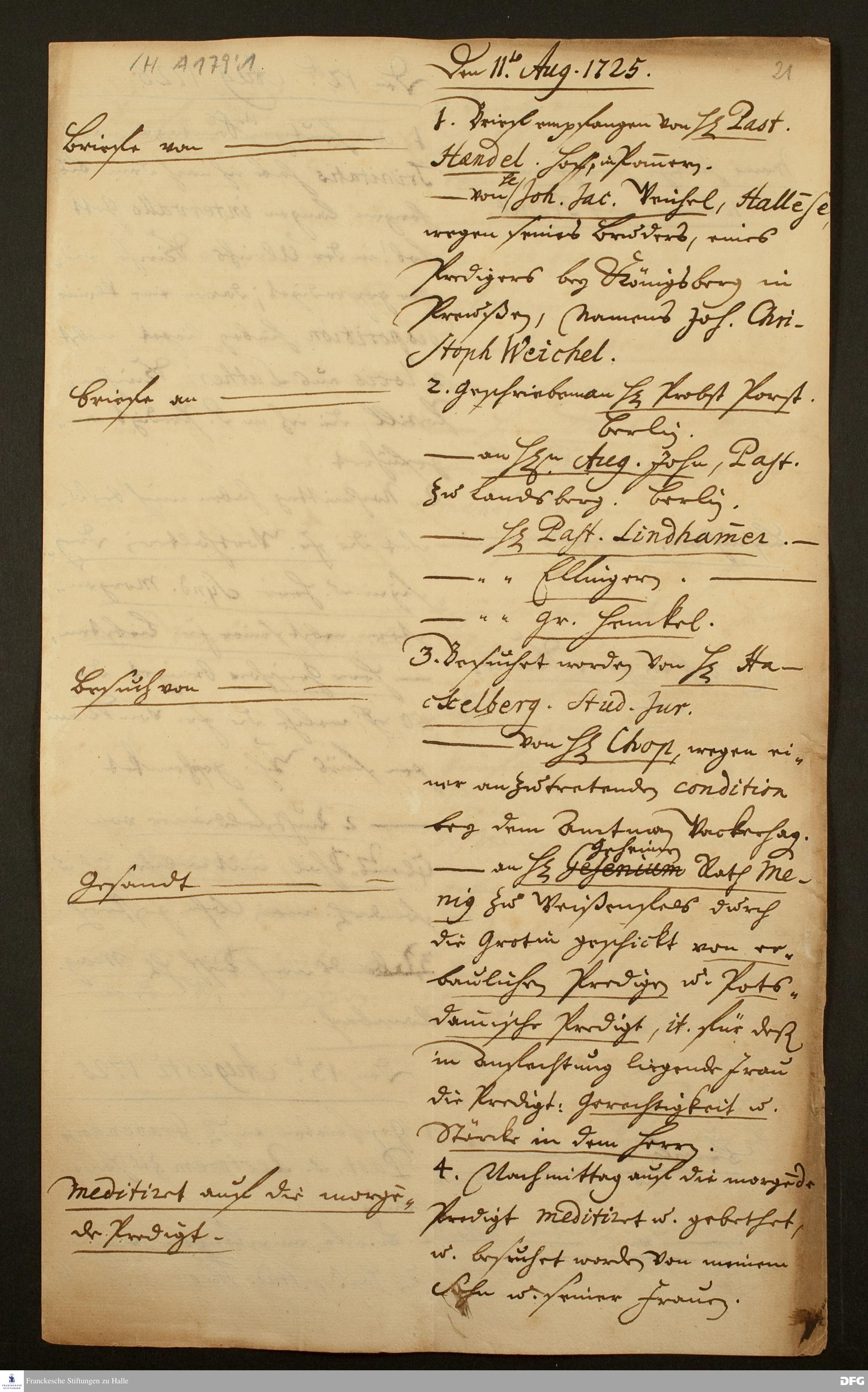 Tagebuch von August Hermann Francke.