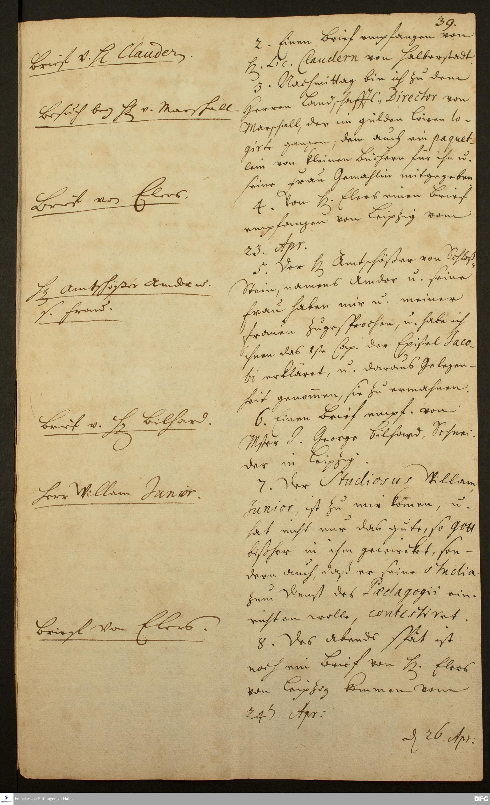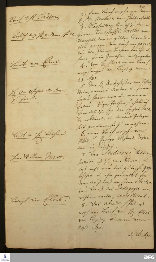 Tagebuch von August Hermann Francke.