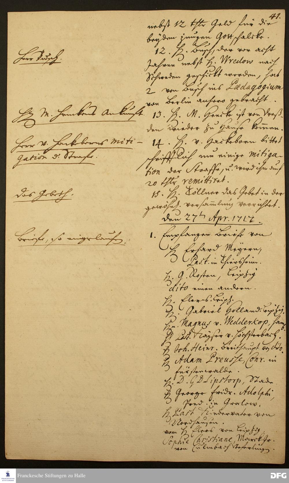 Tagebuch von August Hermann Francke.