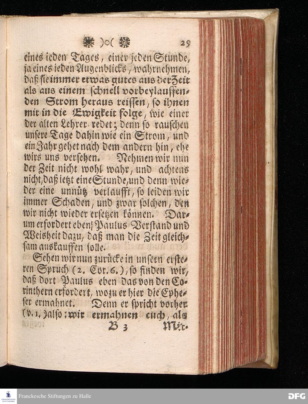 Der rechte Gebrauch der Zeit / So fern dieselbe gut, und so fern sie böse ist, Aus 2 Cor.VI, 2. und Eph.V, 16. vorgestellet, Und Auf die Beschaffenheit der ietzigen Zeiten appliciret, Den 4.Januar. als zum Anfang des 1713. Jahrs, Im Waysen=Hause zu Glaucha vor Halle, Von August Hermann Francken, S.Th.P.Ord.Past. Vlr.& Schol. Dritte Auflage. HALLE, in Verlegung des Waysenhauses. 1724.