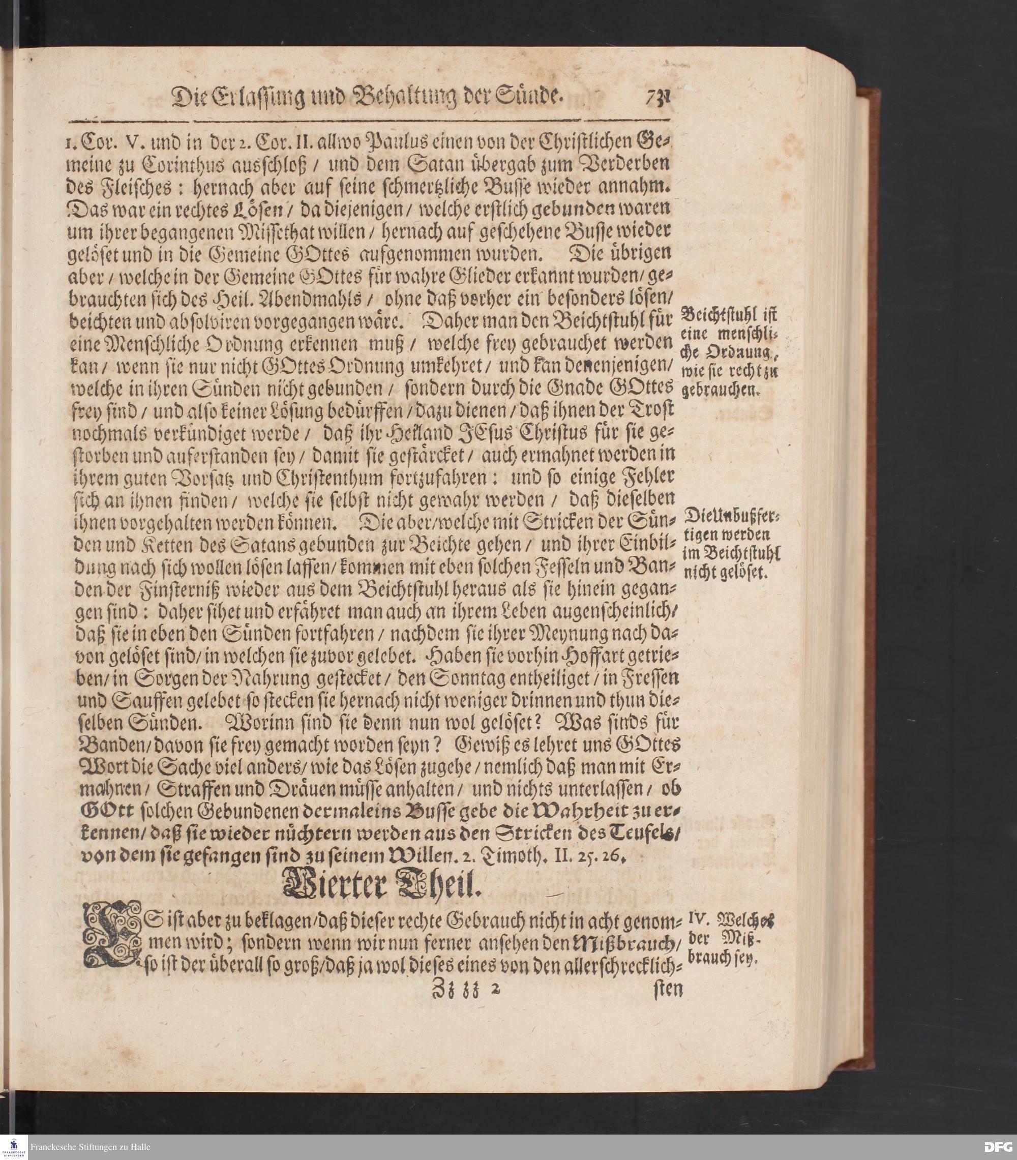 August Hermann Franckens S.Theol.Prof.und Past. Sonn= Fest= und Apostel=Tags=-Predigten / Darinnen Die zum wahren Christenthum gehörige nöthigste und vornehmste Materien abgehandelt sind; Nunmehro von neuen wieder durchgesehen / und mit einigen Predigten vermehret / Nebst den darzu nützlichen Registern. Die vierte EDITION. HALLE / gedruckt und verlegt im Wäysen=Hause / MDCCXV. Mit Königl.Preuß.und Churfl.Brandenb.Privil.