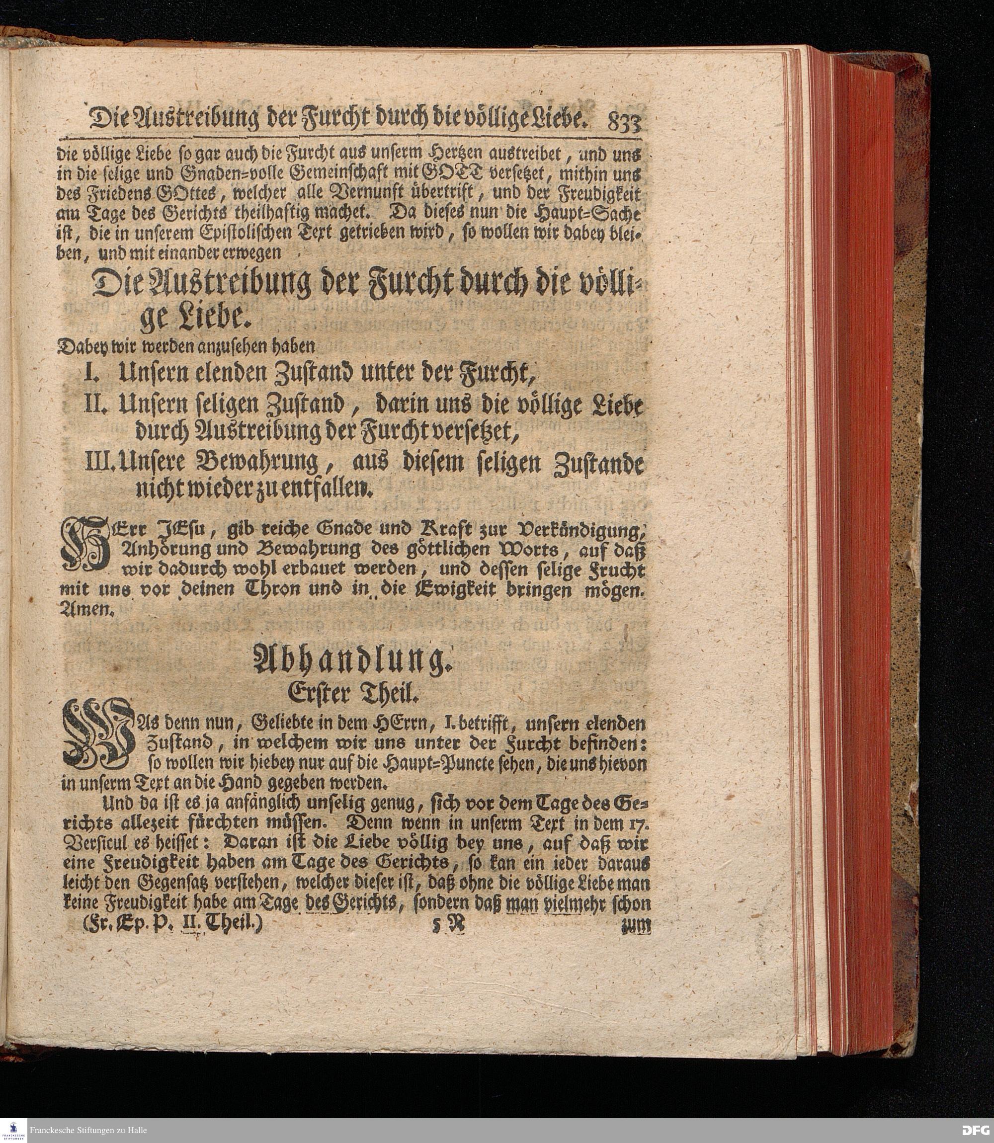 August Hermann Franckens, S.Theol.Prof.Past.Ulric.& Scholarchæ Predigten über die Sonn= und Fest=Tags=Episteln / Nebst einer Vorrede vom erbaulichen predigen, und von dem rechten Gebrauch dieser Predigten, auch Mit nöthigen Registern versehen. Die dritte EDITION. HALLE, in Verlegung des Wäysen=Hauses, MDCCXXXXI.