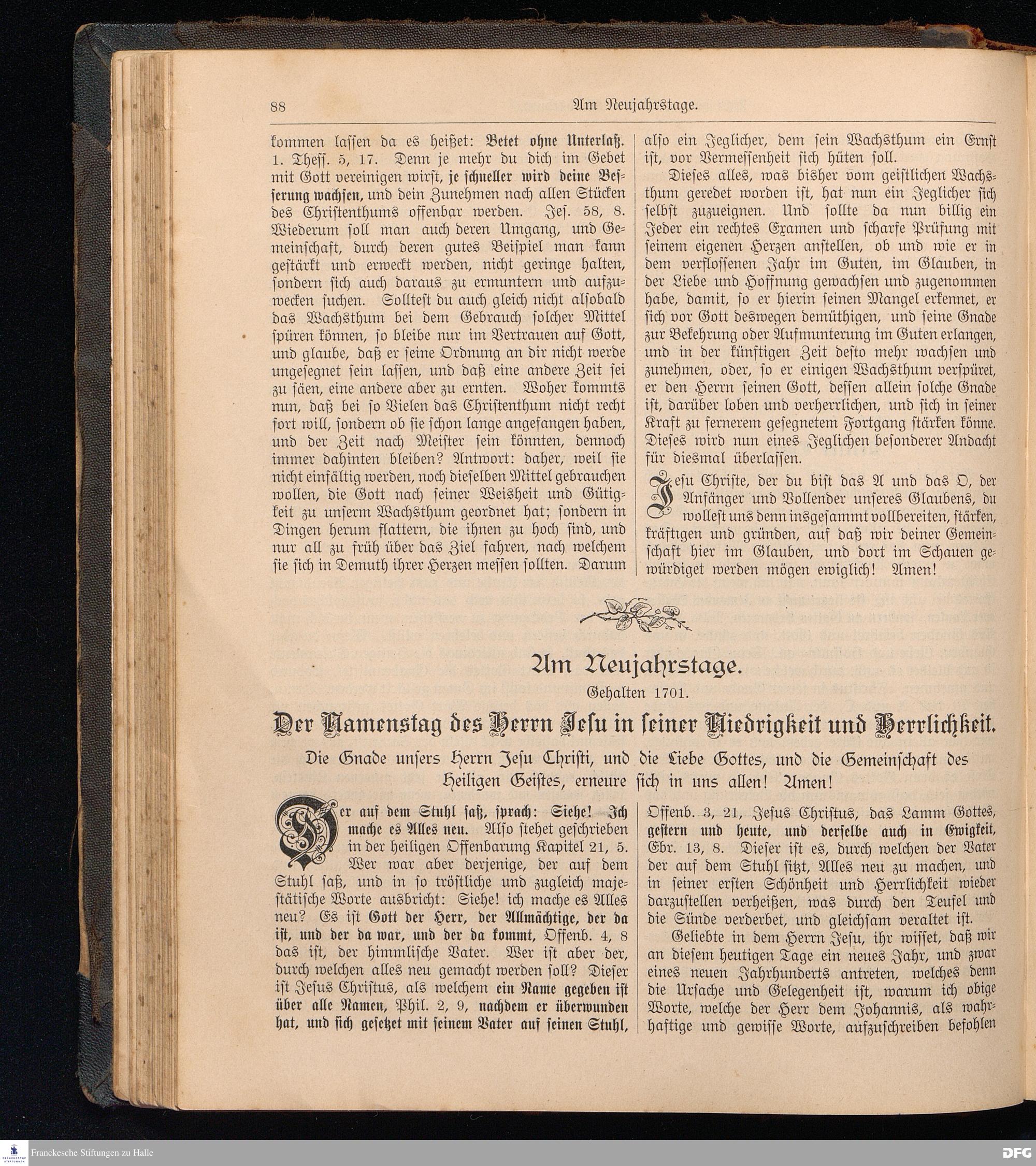 August Hermann Francke's weil.d.Theol.Prof.u.Pastor in Halle a.S., Sonn-, Fest- u. Aposteltags-Predigten, darinnen die zum wahren Christenthum gehörigen und vornehmsten Lehren behandelt sind. Aufs neue herausgegeben, verlegt und nur allein zu beziehen vom Ostpr.evang.Gebets=Verein in Berlin, Anklamstraße 31. Tilsit 1902. Gedruckt bei M. Jagomast.