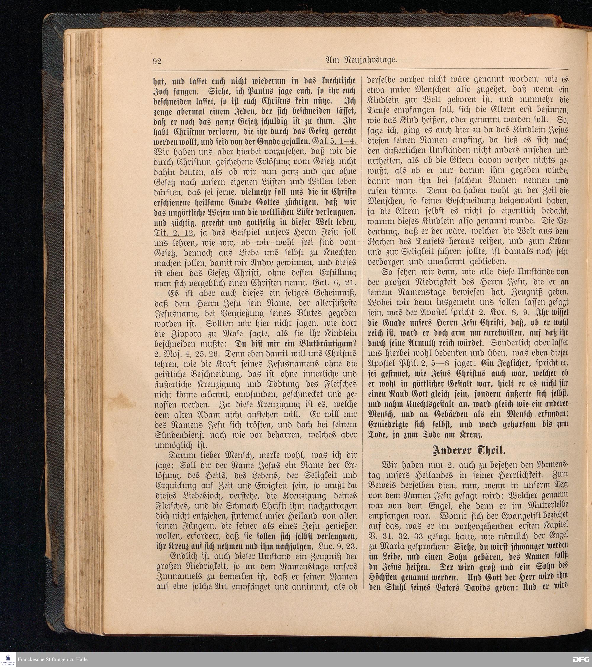 August Hermann Francke's weil.d.Theol.Prof.u.Pastor in Halle a.S., Sonn-, Fest- u. Aposteltags-Predigten, darinnen die zum wahren Christenthum gehörigen und vornehmsten Lehren behandelt sind. Aufs neue herausgegeben, verlegt und nur allein zu beziehen vom Ostpr.evang.Gebets=Verein in Berlin, Anklamstraße 31. Tilsit 1902. Gedruckt bei M. Jagomast.