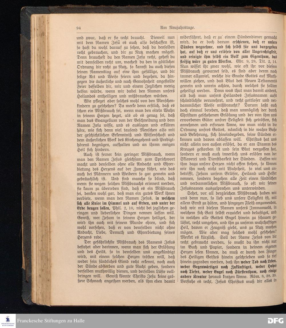 August Hermann Francke's weil.d.Theol.Prof.u.Pastor in Halle a.S., Sonn-, Fest- u. Aposteltags-Predigten, darinnen die zum wahren Christenthum gehörigen und vornehmsten Lehren behandelt sind. Aufs neue herausgegeben, verlegt und nur allein zu beziehen vom Ostpr.evang.Gebets=Verein in Berlin, Anklamstraße 31. Tilsit 1902. Gedruckt bei M. Jagomast.