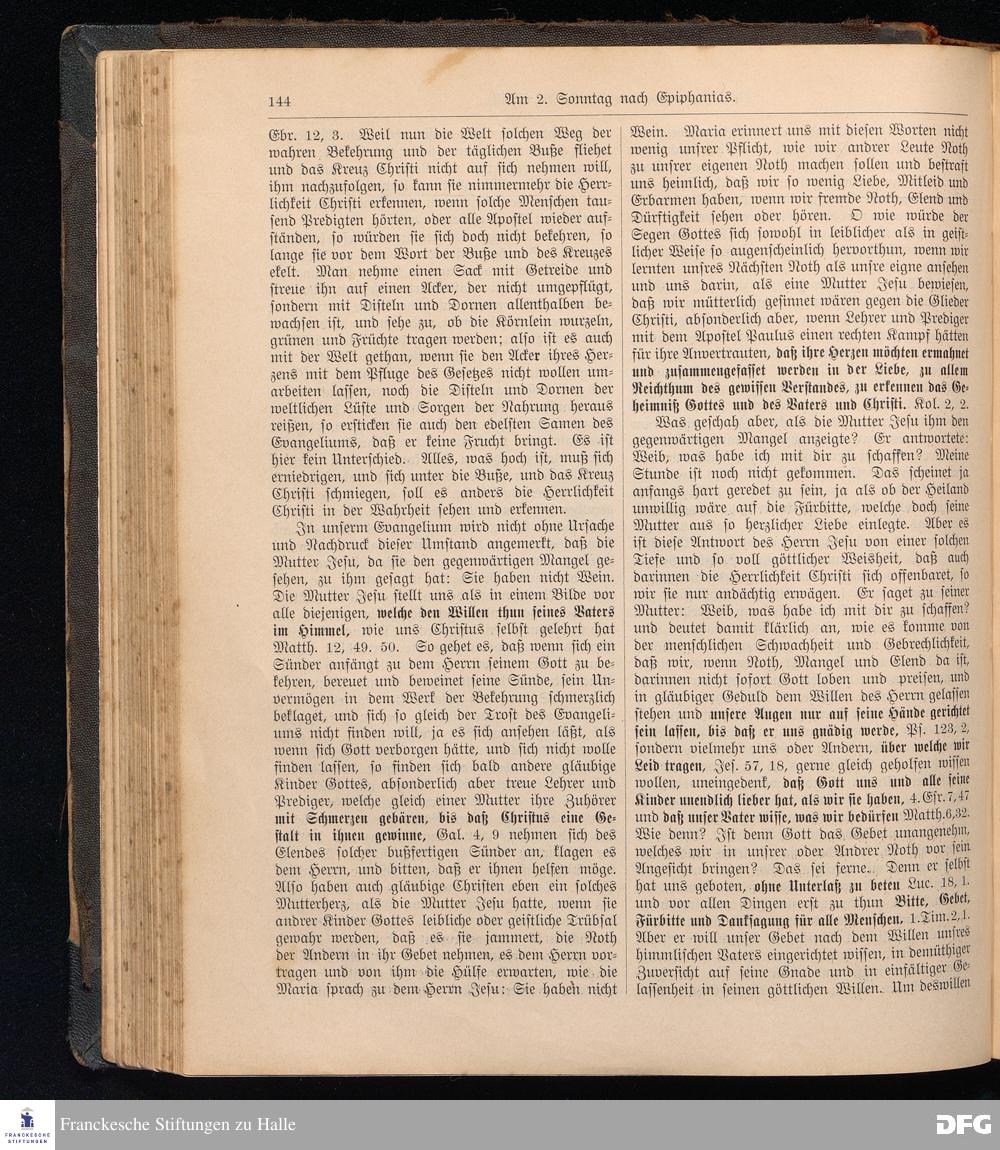 August Hermann Francke's weil.d.Theol.Prof.u.Pastor in Halle a.S., Sonn-, Fest- u. Aposteltags-Predigten, darinnen die zum wahren Christenthum gehörigen und vornehmsten Lehren behandelt sind. Aufs neue herausgegeben, verlegt und nur allein zu beziehen vom Ostpr.evang.Gebets=Verein in Berlin, Anklamstraße 31. Tilsit 1902. Gedruckt bei M. Jagomast.