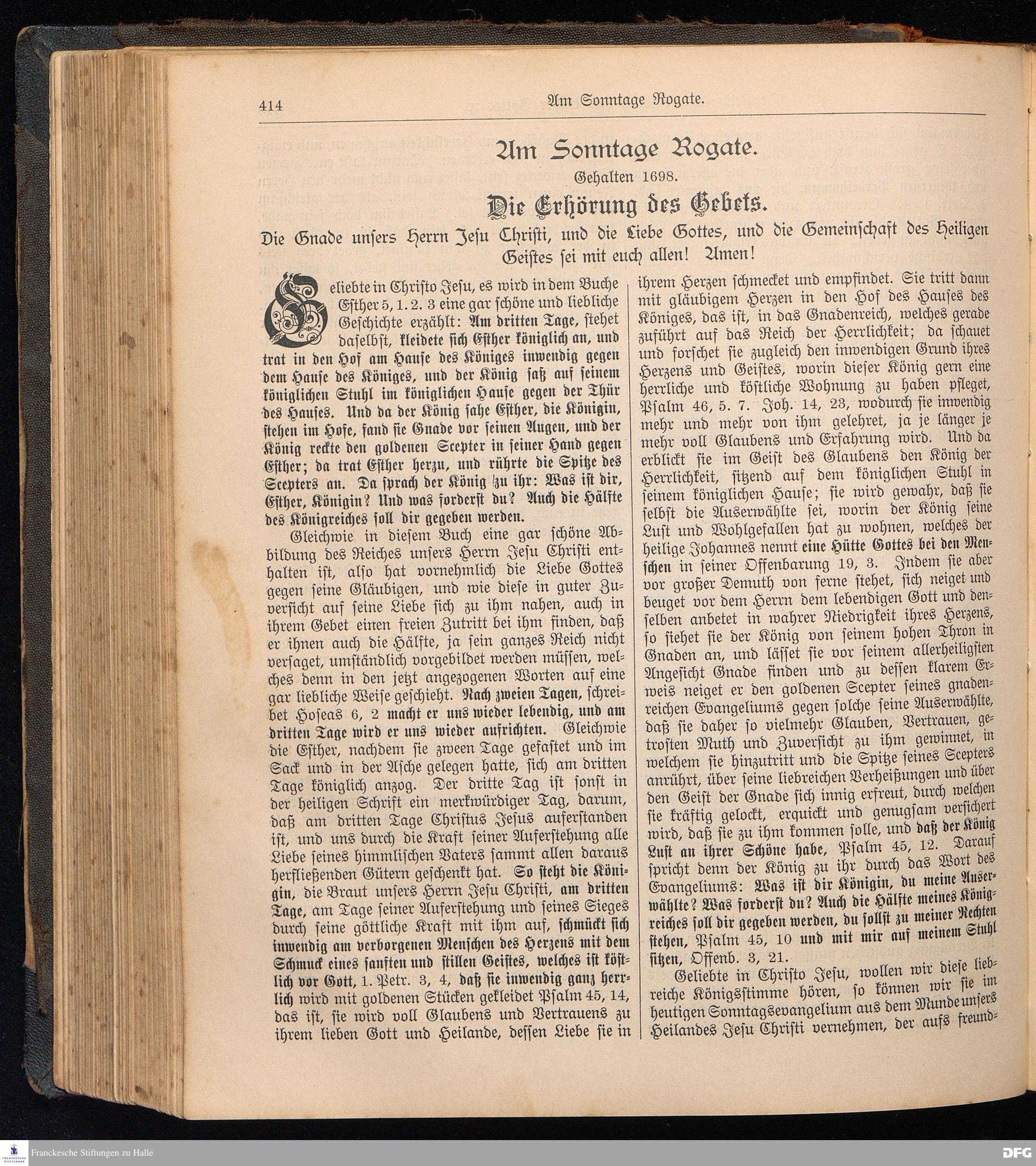 August Hermann Francke's weil.d.Theol.Prof.u.Pastor in Halle a.S., Sonn-, Fest- u. Aposteltags-Predigten, darinnen die zum wahren Christenthum gehörigen und vornehmsten Lehren behandelt sind. Aufs neue herausgegeben, verlegt und nur allein zu beziehen vom Ostpr.evang.Gebets=Verein in Berlin, Anklamstraße 31. Tilsit 1902. Gedruckt bei M. Jagomast.