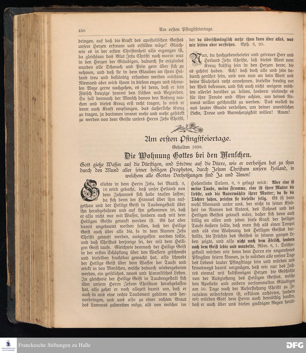 August Hermann Francke's weil.d.Theol.Prof.u.Pastor in Halle a.S., Sonn-, Fest- u. Aposteltags-Predigten, darinnen die zum wahren Christenthum gehörigen und vornehmsten Lehren behandelt sind. Aufs neue herausgegeben, verlegt und nur allein zu beziehen vom Ostpr.evang.Gebets=Verein in Berlin, Anklamstraße 31. Tilsit 1902. Gedruckt bei M. Jagomast.