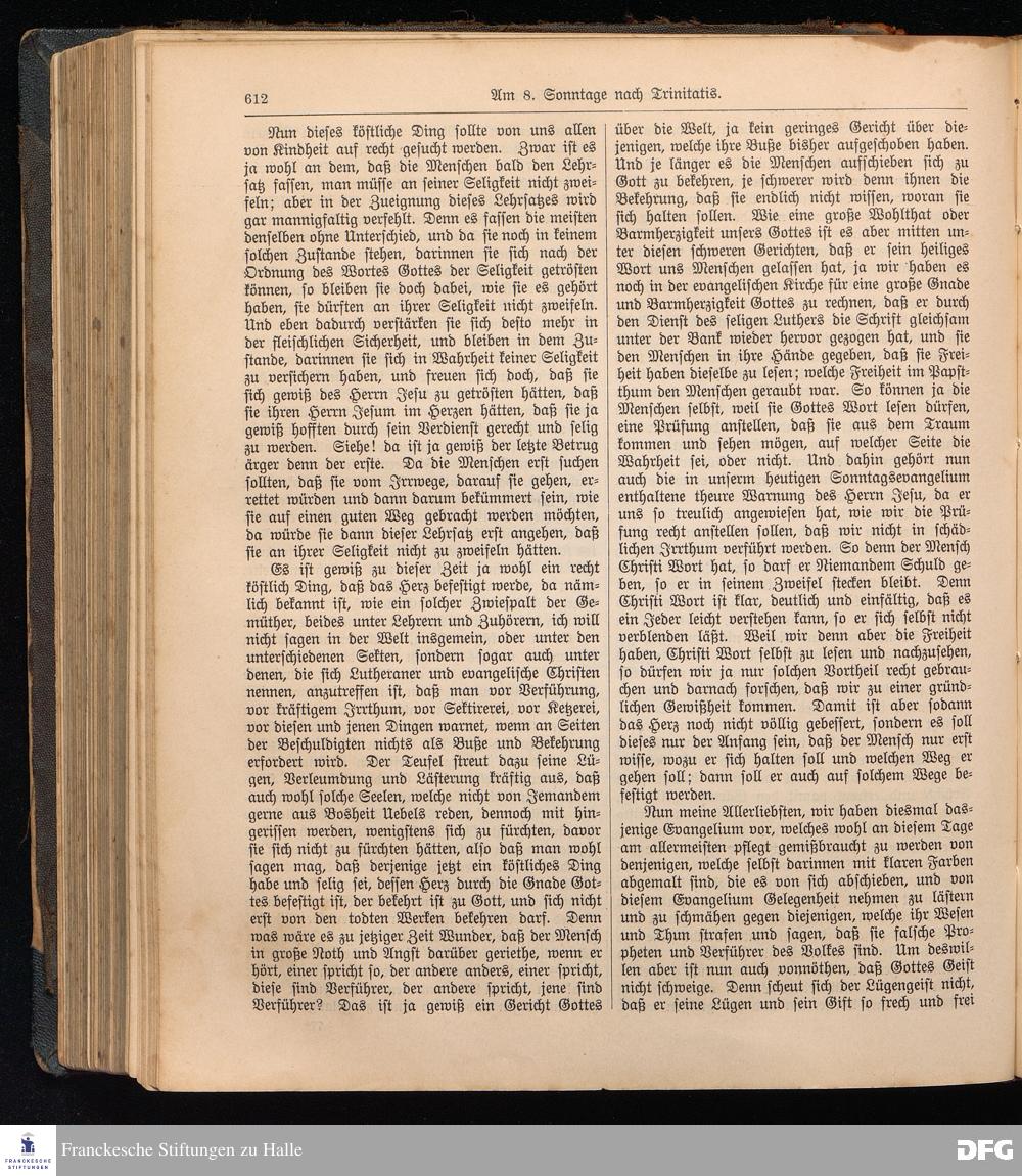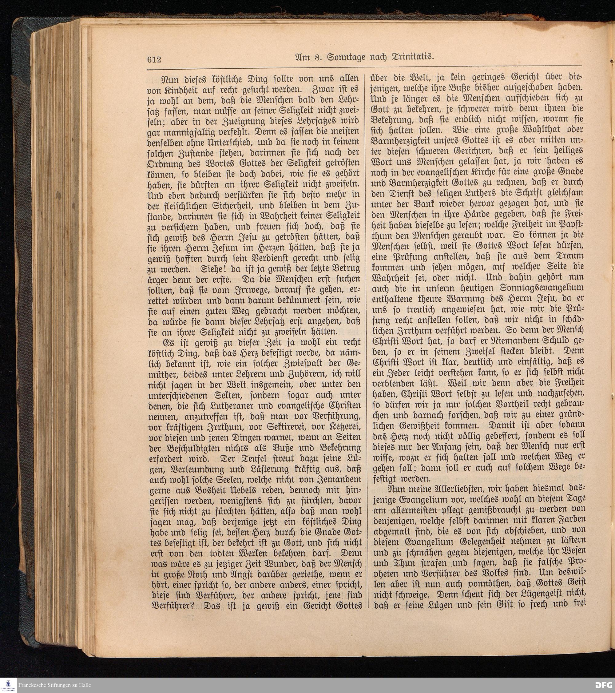 August Hermann Francke's weil.d.Theol.Prof.u.Pastor in Halle a.S., Sonn-, Fest- u. Aposteltags-Predigten, darinnen die zum wahren Christenthum gehörigen und vornehmsten Lehren behandelt sind. Aufs neue herausgegeben, verlegt und nur allein zu beziehen vom Ostpr.evang.Gebets=Verein in Berlin, Anklamstraße 31. Tilsit 1902. Gedruckt bei M. Jagomast.