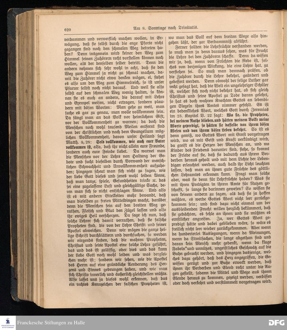 August Hermann Francke's weil.d.Theol.Prof.u.Pastor in Halle a.S., Sonn-, Fest- u. Aposteltags-Predigten, darinnen die zum wahren Christenthum gehörigen und vornehmsten Lehren behandelt sind. Aufs neue herausgegeben, verlegt und nur allein zu beziehen vom Ostpr.evang.Gebets=Verein in Berlin, Anklamstraße 31. Tilsit 1902. Gedruckt bei M. Jagomast.