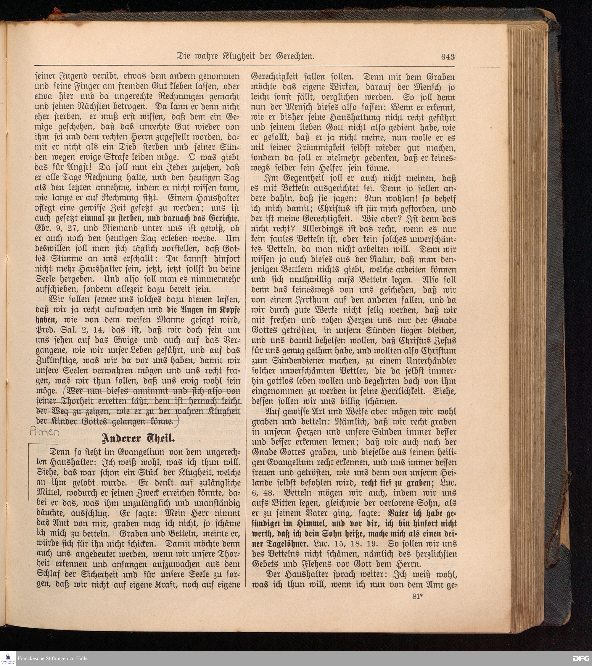 August Hermann Francke's weil.d.Theol.Prof.u.Pastor in Halle a.S., Sonn-, Fest- u. Aposteltags-Predigten, darinnen die zum wahren Christenthum gehörigen und vornehmsten Lehren behandelt sind. Aufs neue herausgegeben, verlegt und nur allein zu beziehen vom Ostpr.evang.Gebets=Verein in Berlin, Anklamstraße 31. Tilsit 1902. Gedruckt bei M. Jagomast.