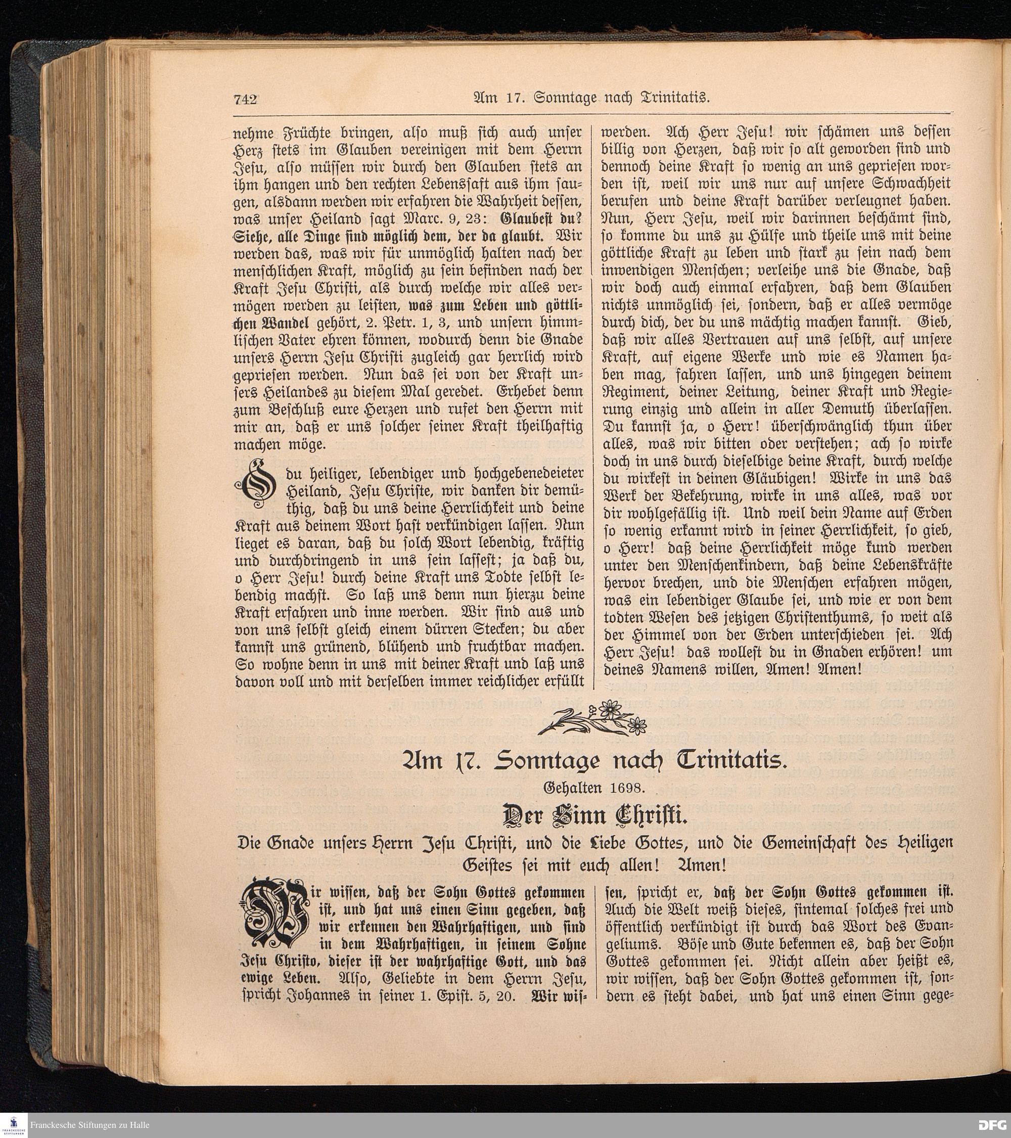 August Hermann Francke's weil.d.Theol.Prof.u.Pastor in Halle a.S., Sonn-, Fest- u. Aposteltags-Predigten, darinnen die zum wahren Christenthum gehörigen und vornehmsten Lehren behandelt sind. Aufs neue herausgegeben, verlegt und nur allein zu beziehen vom Ostpr.evang.Gebets=Verein in Berlin, Anklamstraße 31. Tilsit 1902. Gedruckt bei M. Jagomast.