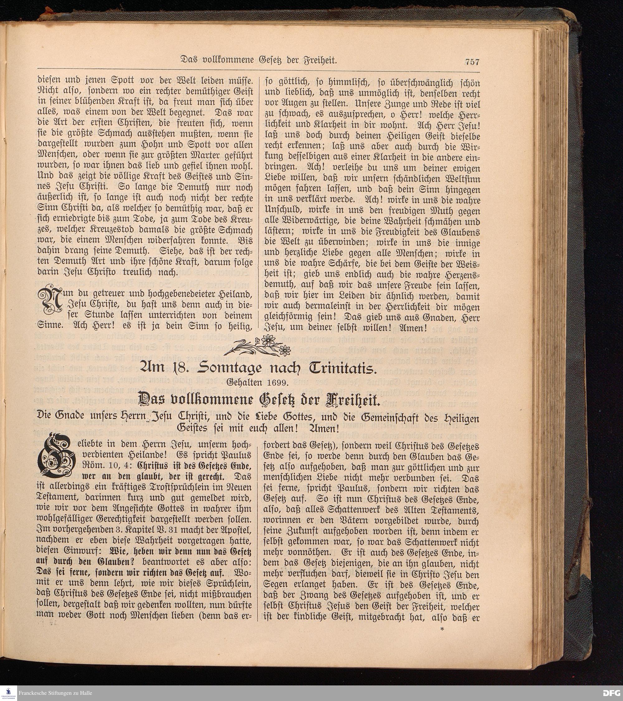 August Hermann Francke's weil.d.Theol.Prof.u.Pastor in Halle a.S., Sonn-, Fest- u. Aposteltags-Predigten, darinnen die zum wahren Christenthum gehörigen und vornehmsten Lehren behandelt sind. Aufs neue herausgegeben, verlegt und nur allein zu beziehen vom Ostpr.evang.Gebets=Verein in Berlin, Anklamstraße 31. Tilsit 1902. Gedruckt bei M. Jagomast.
