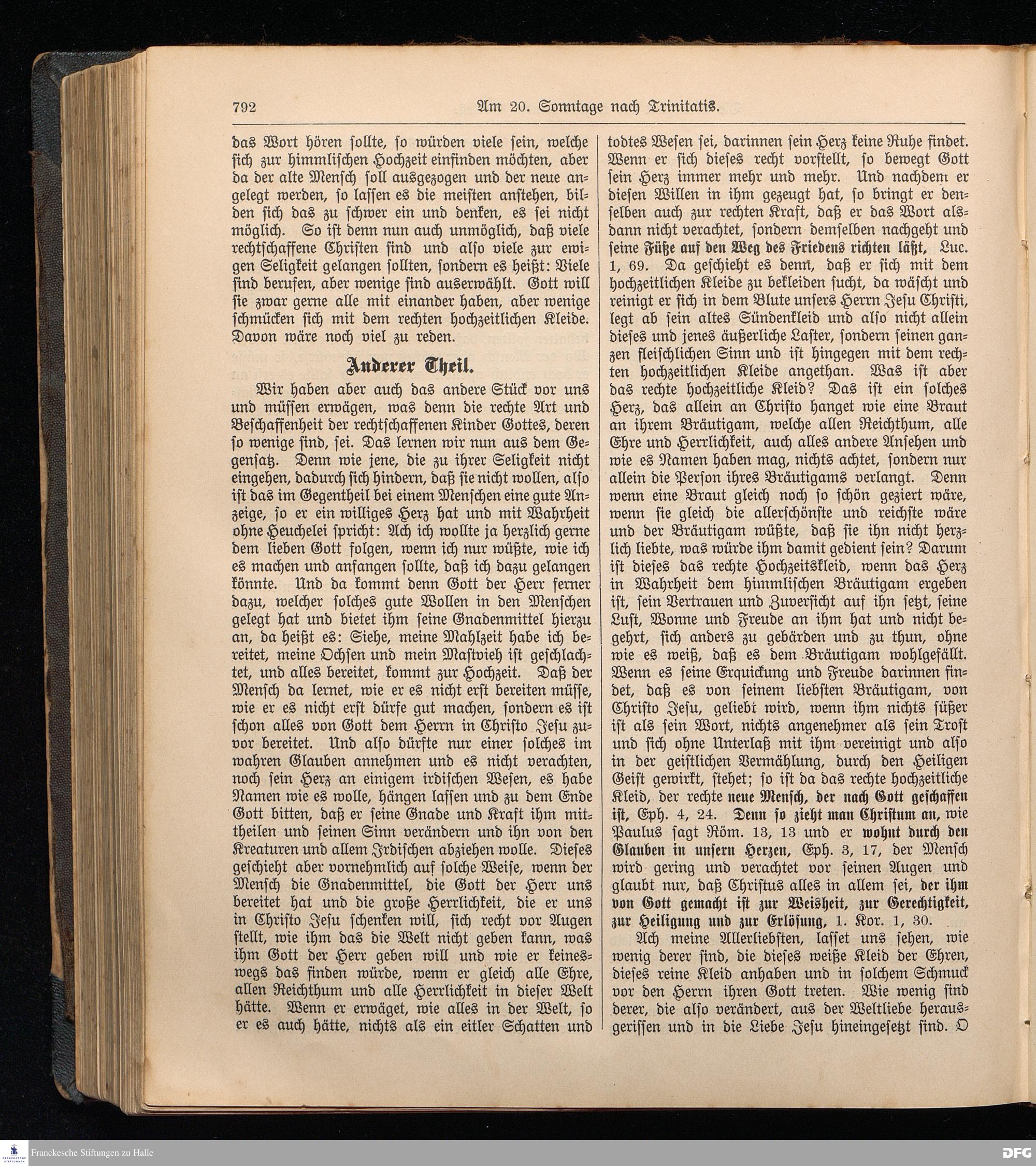 August Hermann Francke's weil.d.Theol.Prof.u.Pastor in Halle a.S., Sonn-, Fest- u. Aposteltags-Predigten, darinnen die zum wahren Christenthum gehörigen und vornehmsten Lehren behandelt sind. Aufs neue herausgegeben, verlegt und nur allein zu beziehen vom Ostpr.evang.Gebets=Verein in Berlin, Anklamstraße 31. Tilsit 1902. Gedruckt bei M. Jagomast.