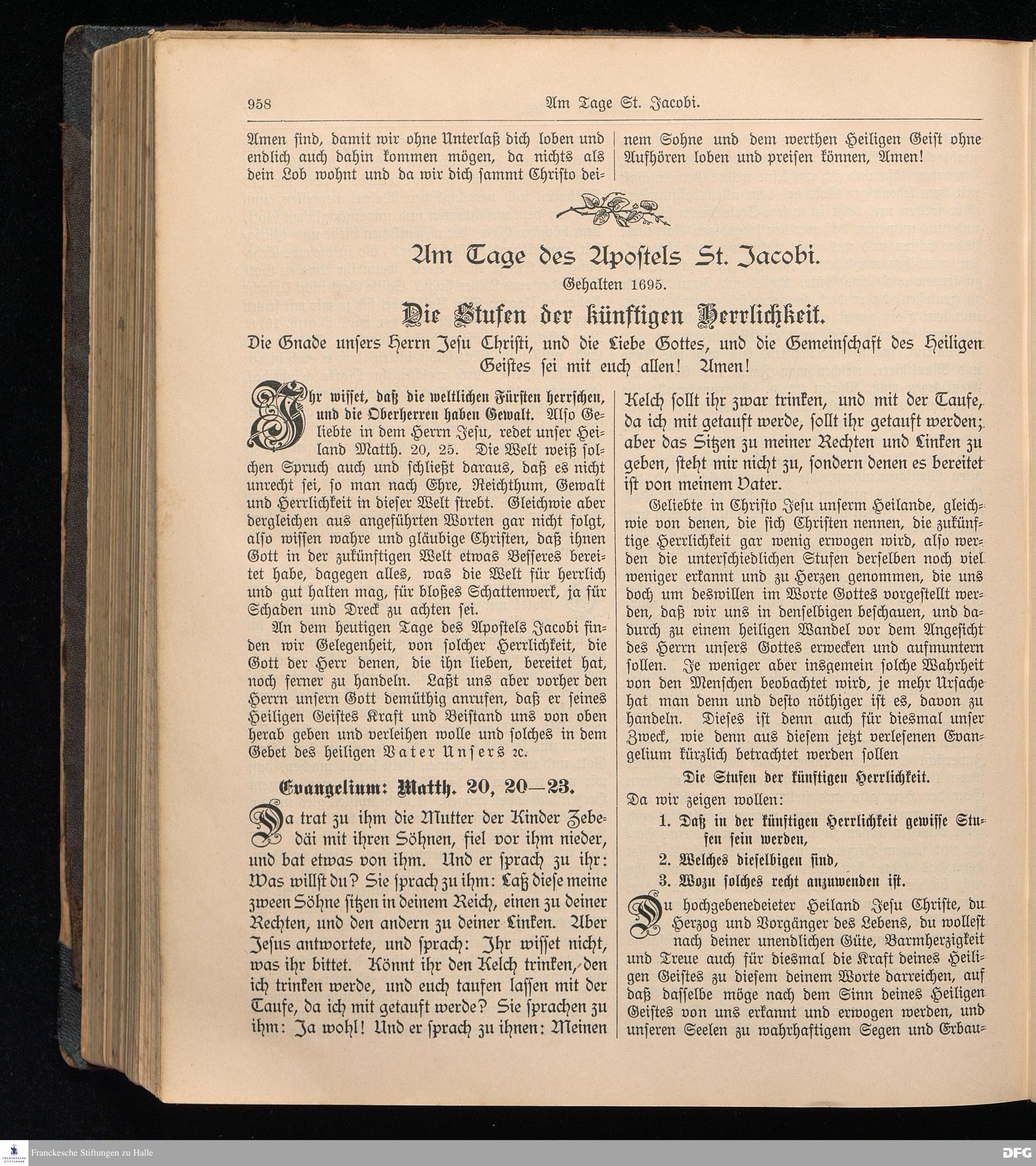 August Hermann Francke's weil.d.Theol.Prof.u.Pastor in Halle a.S., Sonn-, Fest- u. Aposteltags-Predigten, darinnen die zum wahren Christenthum gehörigen und vornehmsten Lehren behandelt sind. Aufs neue herausgegeben, verlegt und nur allein zu beziehen vom Ostpr.evang.Gebets=Verein in Berlin, Anklamstraße 31. Tilsit 1902. Gedruckt bei M. Jagomast.