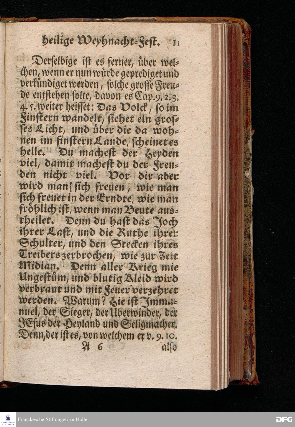 Vorbereitung auf das Weyhnacht=Fest / aus den Worten Jes.IX, 6.7. [Bibeltext;] den 23.Decembr.1720. in volckreicher Versammlung auf dem Wäysen=Hause zu Glaucha an Halle ertheilet von August Hermann Francken / S.Th.Prof.Past.Vlr.& Schol. Andere Auflage. HALLE, zu finden im Wäysen=Hause 1730.