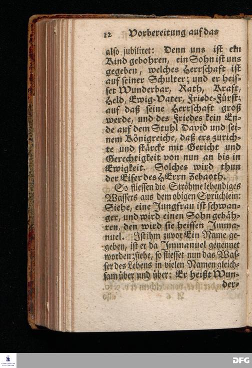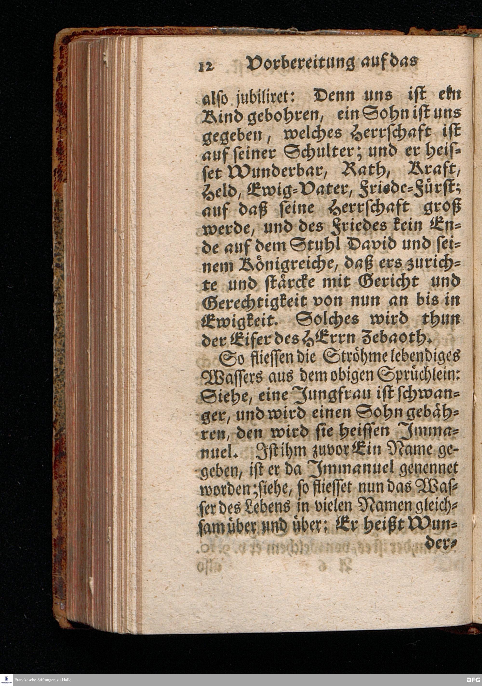 Vorbereitung auf das Weyhnacht=Fest / aus den Worten Jes.IX, 6.7. [Bibeltext;] den 23.Decembr.1720. in volckreicher Versammlung auf dem Wäysen=Hause zu Glaucha an Halle ertheilet von August Hermann Francken / S.Th.Prof.Past.Vlr.& Schol. Andere Auflage. HALLE, zu finden im Wäysen=Hause 1730.