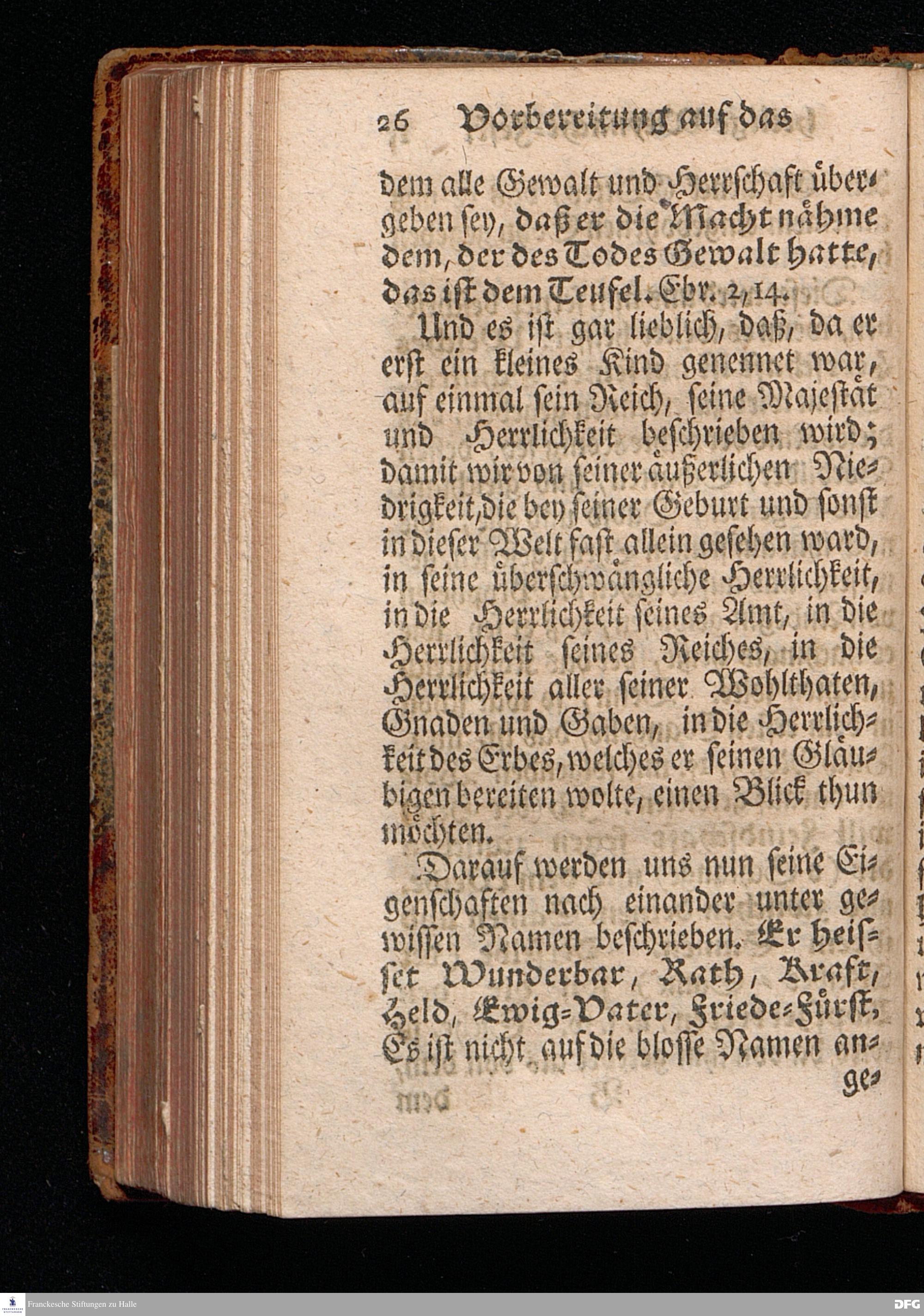 Vorbereitung auf das Weyhnacht=Fest / aus den Worten Jes.IX, 6.7. [Bibeltext;] den 23.Decembr.1720. in volckreicher Versammlung auf dem Wäysen=Hause zu Glaucha an Halle ertheilet von August Hermann Francken / S.Th.Prof.Past.Vlr.& Schol. Andere Auflage. HALLE, zu finden im Wäysen=Hause 1730.