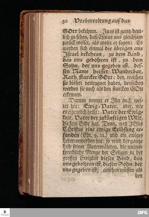 Vorbereitung auf das Weyhnacht=Fest / aus den Worten Jes.IX, 6.7. [Bibeltext;] den 23.Decembr.1720. in volckreicher Versammlung auf dem Wäysen=Hause zu Glaucha an Halle ertheilet von August Hermann Francken / S.Th.Prof.Past.Vlr.& Schol. Andere Auflage. HALLE, zu finden im Wäysen=Hause 1730.