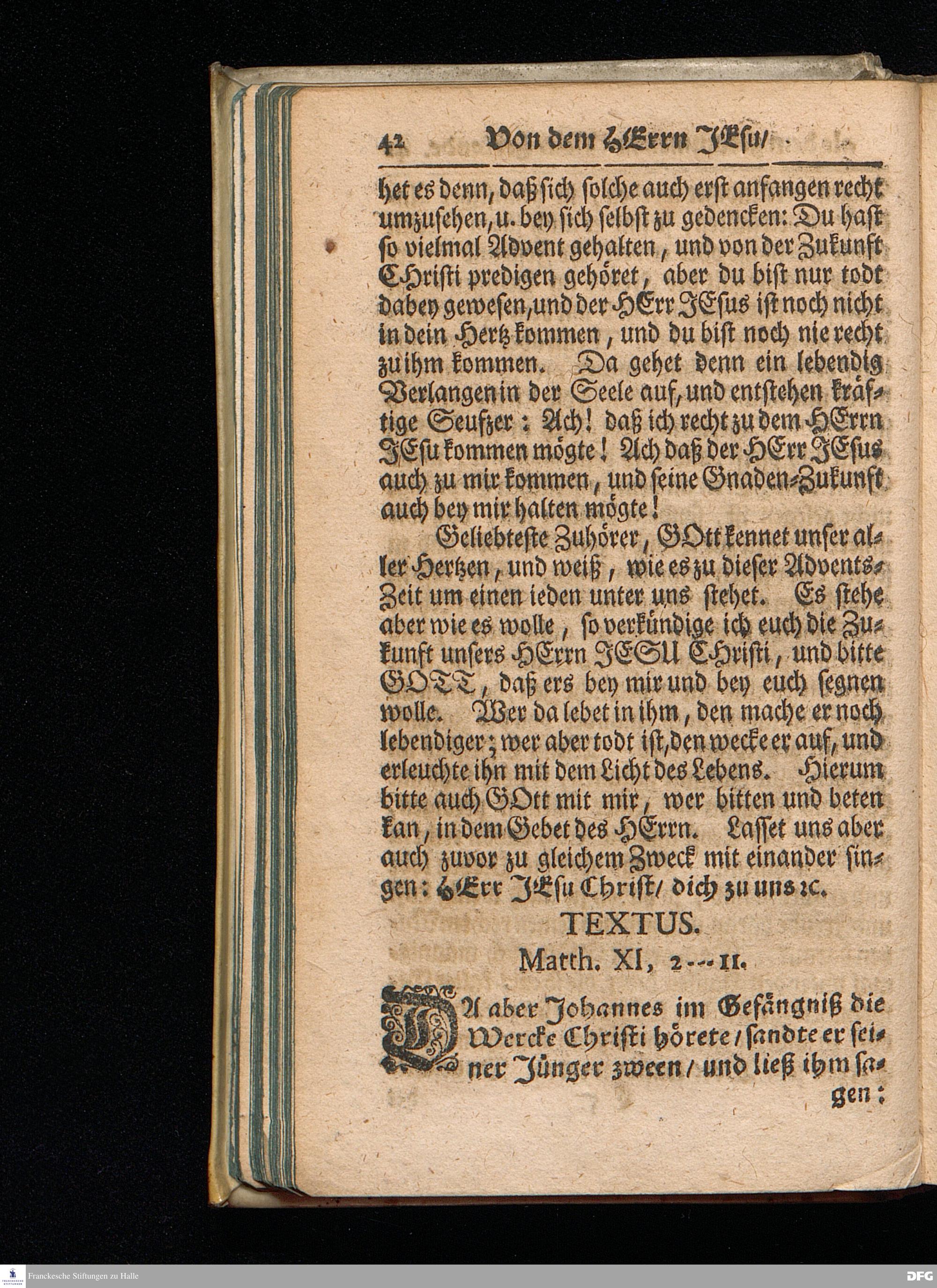 August Hermann Franckens / S.Theol.Prof.& Past. zu S.Ulrich, und des Gymnasii Scholarchæ, Kurtze Sonn= und Fest=Tags=Predigten / Darinnen Vornemlich zum wahren / lebendigen / Kraft=vollen und in guten Früchten sich beweisenden Glauben, die nöthige Aufweckung und Anweisung gegeben wird. Die andere EDITION, mit einer neuen Vorrede und einem Register versehen. HALLE, in Verlegung des Wäysen=Hause MDCCXVIII.