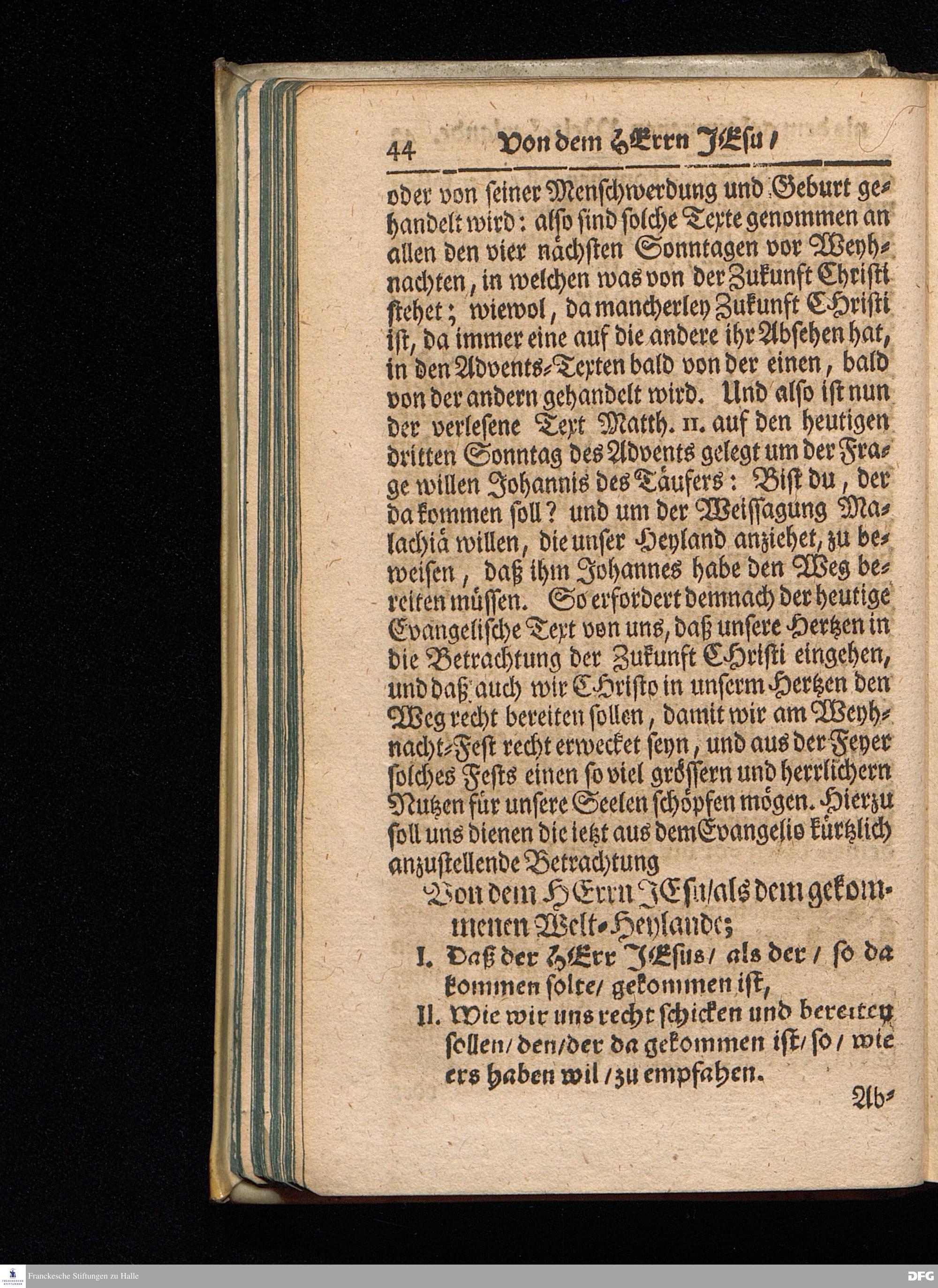 August Hermann Franckens / S.Theol.Prof.& Past. zu S.Ulrich, und des Gymnasii Scholarchæ, Kurtze Sonn= und Fest=Tags=Predigten / Darinnen Vornemlich zum wahren / lebendigen / Kraft=vollen und in guten Früchten sich beweisenden Glauben, die nöthige Aufweckung und Anweisung gegeben wird. Die andere EDITION, mit einer neuen Vorrede und einem Register versehen. HALLE, in Verlegung des Wäysen=Hause MDCCXVIII.
