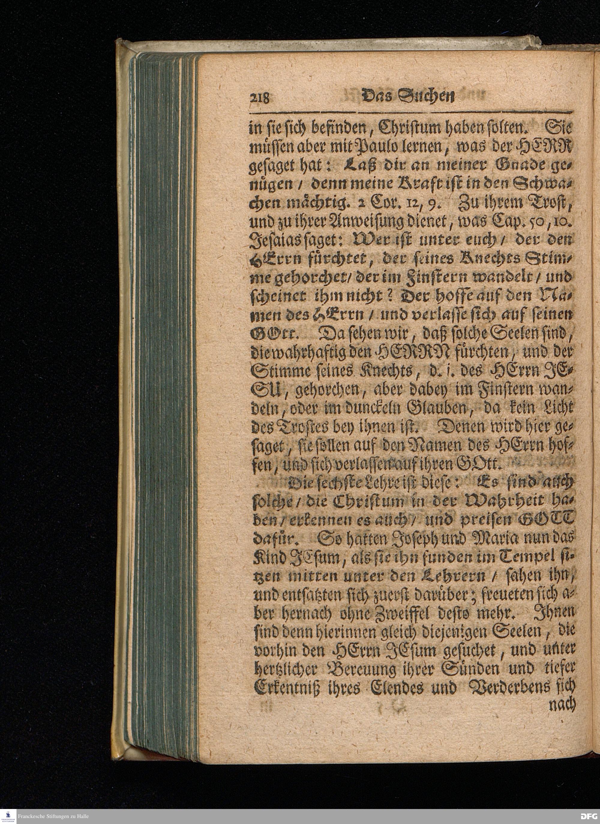 August Hermann Franckens / S.Theol.Prof.& Past. zu S.Ulrich, und des Gymnasii Scholarchæ, Kurtze Sonn= und Fest=Tags=Predigten / Darinnen Vornemlich zum wahren / lebendigen / Kraft=vollen und in guten Früchten sich beweisenden Glauben, die nöthige Aufweckung und Anweisung gegeben wird. Die andere EDITION, mit einer neuen Vorrede und einem Register versehen. HALLE, in Verlegung des Wäysen=Hause MDCCXVIII.